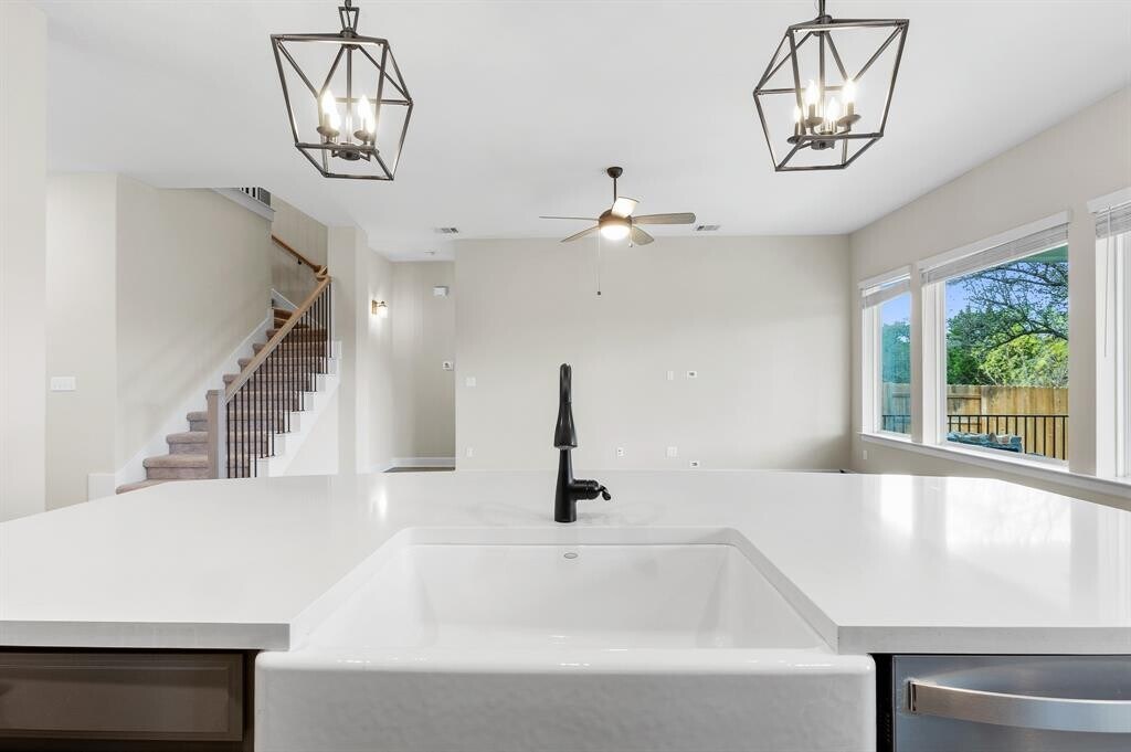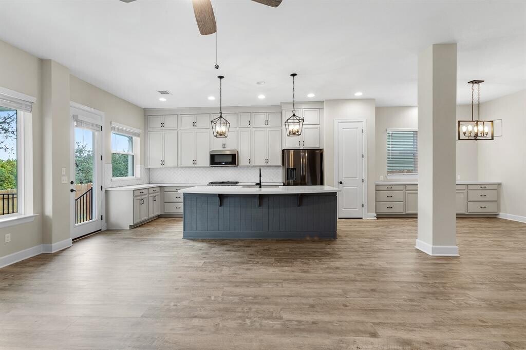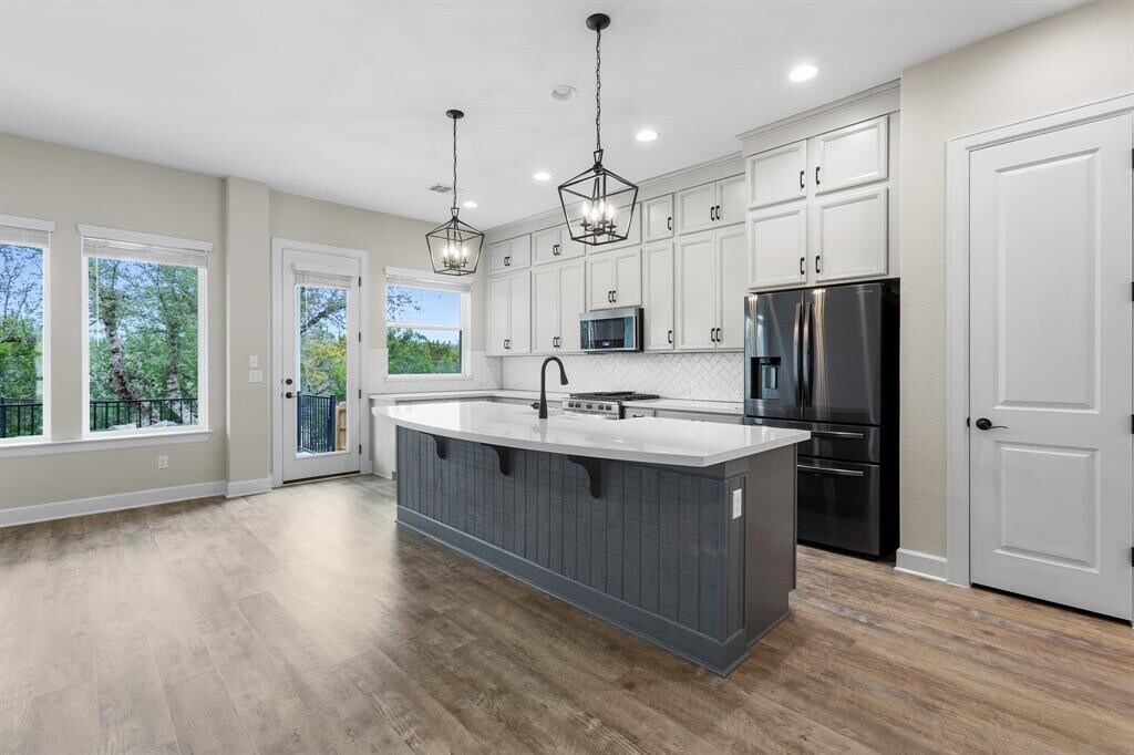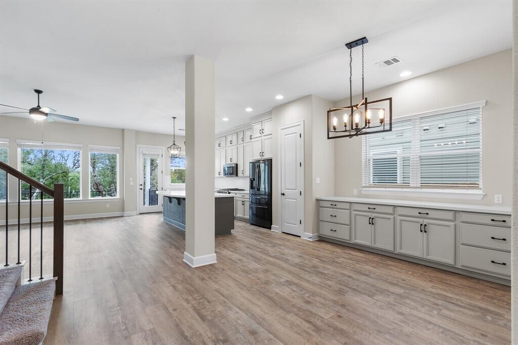 This beautifully designed greenbelt Headwaters home offers one of the most desirable floor plans in the neighborhood, combining comfort with style and a setting that feels both private and connected. With four bedrooms, three full bathrooms, and a dedicated study, the layout is incredibly functional and well-suited for a variety of lifestyles. Luxury vinyl plank flooring runs throughout the main living areas, creating a warm feel. The open kitchen connects seamlessly to the living room and dining area, making the space easy to live in and great for gathering. The dining room features a built-in buffet for extra storage, and the kitchen island offers casual seating and ample workspace. The primary bedroom is located on the main floor and includes a spacious bathroom with an oversized walk-in shower, dual vanity, and a generous walk-in closet. An additional guest bedroom on the main level has direct access to a full bathroom, offering flexibility for guests or everyday use. A dedicated office provides a comfortable work-from-home or quiet study setup. Upstairs, two additional bedrooms share a full bathroom and are connected by a landing that works well as a secondary living area. The home also includes excellent attic storage, a rare and practical bonus. A charming custom front porch swing welcomes you at the entry, offering the perfect spot to enjoy quiet mornings or unwind in the evenings. The home backs to a peaceful greenbelt, offering a sense of privacy and a quiet backdrop. A covered back patio extends the living space outdoors, offering views of a flat, usable backyard that is perfect for relaxing, entertaining, or simply enjoying the surroundings. Residents enjoy access to all that Headwaters has to offer, including trails, parks, a community pool, fitness facilities, and top-rated Dripping Springs ISD. Homes like this, well laid out, well located, and backing to greenbelt, are rarely available for lease. AVAILABLE NOW! MLS ID 2219816