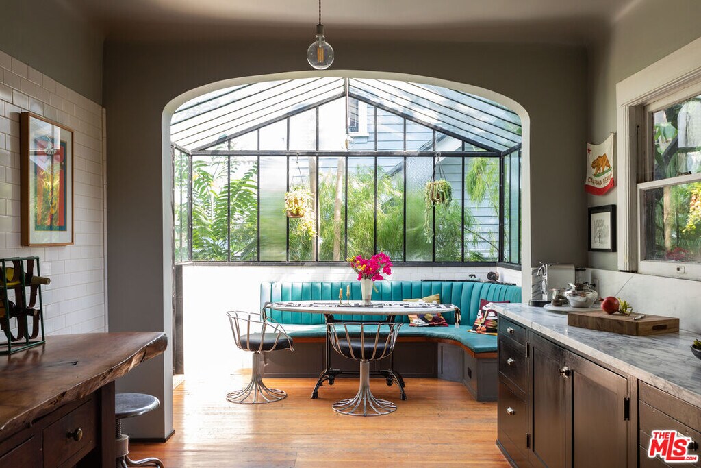 SHORT TERM SUMMER LEASE. An extraordinary specimen of rare Mission Craftsman architecture, circa 1906. This one-of-a-kind home was designed by Arthur Benton and built for the Stilson Family, the original developers of Angeleno Heights, one of the oldest neighborhoods in Los Angeles. This impressive Grand Dame offers 3 bedrooms, 3 baths, an impressive office, den, multiple patios and outdoor areas and a swimmers pool and spa situated in a large grassy yard. The heartbeat of the house is the enormous chefs kitchen with custom glass conservatory style sitting room. The living room and formal dining room feature original leaded glass windows and moldings. The entire home - inside and out - affords breathtaking, sweeping city views of Echo Park Lake, Griffith Park Observatory, the Hollywood sign and beyond. This incomparable house is offered fully furnished for a short term lease and shown to prequalified tenants only by private appointment. Available June 14- Sept 1, 2026 MLS# 26675663