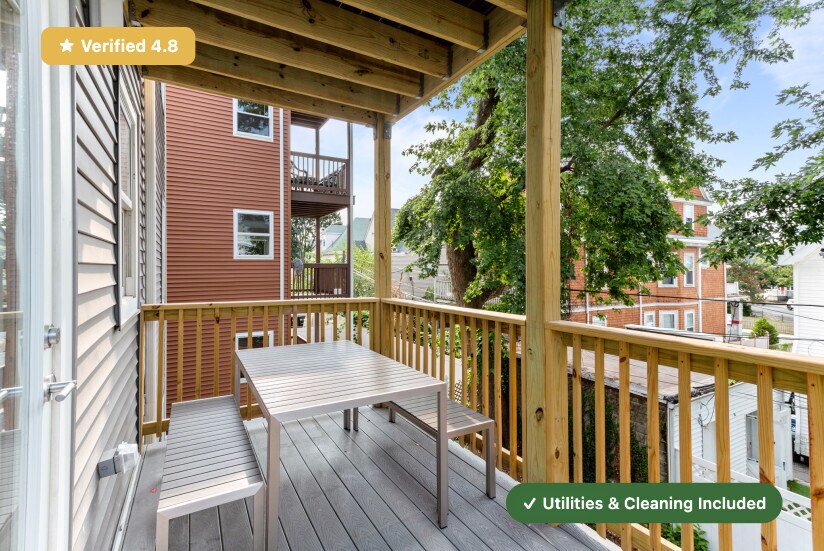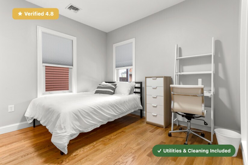 No broker fee! Only last month deposit needed. RoostUp is offering a beautifully renovated private bedroom with ensuite bath in East Boston. Less than a 5 minute walk to Orient Heights MBTA Blue Line train station in a 5 bedroom/5 bath apartment. Check out RoostUp's 100+reviews averaging 4.8-stars on Google and Facebook. Completely furnished all-inclusive concept from RoostUp. Fully-equipped kitchen included with granite countertops, new appliances and 4K Smart TV. RoostUp amenities include all utilities, high-speed WiFi, in-unit laundry, central air, and bi-weekly cleaning. Here's what is included: Furnished private bedroom with private ensuite bath ------------------------------------------------------ - New bed and high quality mattress - Matching dresser with desk, lamp and chair - Full length mirror and coat rack - Custom closet system with built in storage Stocked kitchen and furnished living area ----------------------------------------- - Renovated kitchen with new countertops & stainless steel appliances - Kitchenware, dishes, glassware and flatware - Fully furnished including sofa, chairs, coffee table - 4K Smart TV Utilities & Cleaning ------------------- - All utilities (gas, electric, wifi) - Bi-weekly professional cleaning - 1Gbps WiFi - Keyless smartphone locks - Central A/C - Free in-unit laundry - Weekly trash and recycling removal - Included for one flat monthly fee RoostUp never charges a broker fee or security deposit. Only First and Last Month Rent due at lease signing. Sorry, no pets. The RoostUp application process includes a credit and background screening. International applicants can submit copies of valid passport & visa. Please note there is an application process that includes a credit and background check.