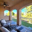 MOUNTAIN & GOLF COURSE VIEWS! Tucked away on a quiet cul-de-sac, this bright and open three-bedroom, three-bath home features a dramatic living room with soaring 20' ceilings. Enjoy stunning views from the kitchen, dining area, covered deck, upstairs primary bedroom, and downstairs bedroom. Updated in recent years with HVAC, windows, interior paint, a steel security door, light fixtures, indoor and outdoor ceiling fans, and custom window treatments. Two large walk-in closets provide ample storage. HOA maintains the landscaping for easy, low-maintenance living.