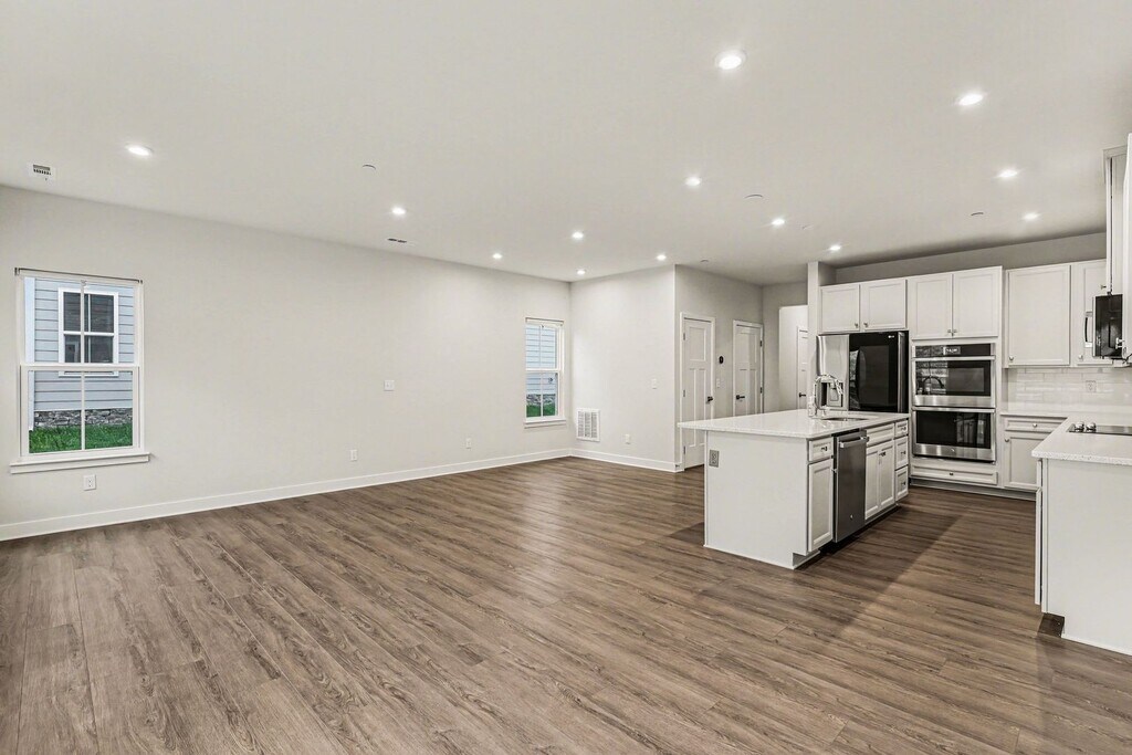 Come see this beautiful 3-bedroom, 2.5-bath home END UNIT with a 1-car garage for immediate occupancy! This thoughtfully designed home features a gourmet kitchen complete with a quartz island, double ovens, cooktop, dishwasher, and microwave—perfect for cooking and entertaining. Enjoy stylish wood-look LVP flooring throughout the first floor. The luxurious owner’s suite offers two closets and a private ensuite bath featuring a water closet, linen closet, and a stunning Roman shower with dual shower heads and a built-in tile bench. Additional highlights include a spacious laundry room and access to fantastic community amenities such as a dog park, fire pit, sidewalks, and a walking trail. Conveniently located just minutes from shopping, dining, and only 5 minutes from the new I-65 exit on Buckner Road. Washer and Dryer is included and refrigerator. The owner has left the bedroom furniture if interested at no expense to the renter. Trash is included - Electric, water is not included.