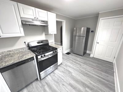 Come see this updated 2 Bedroom 1 Bath home with new paint, kitchen countertops and appliances. A spacious living room flows into the formal dining room. Two great sized bedrooms with plenty of closet space. Laundry in basement. Fully fenced back yard and 1 car detached garage with storage room.