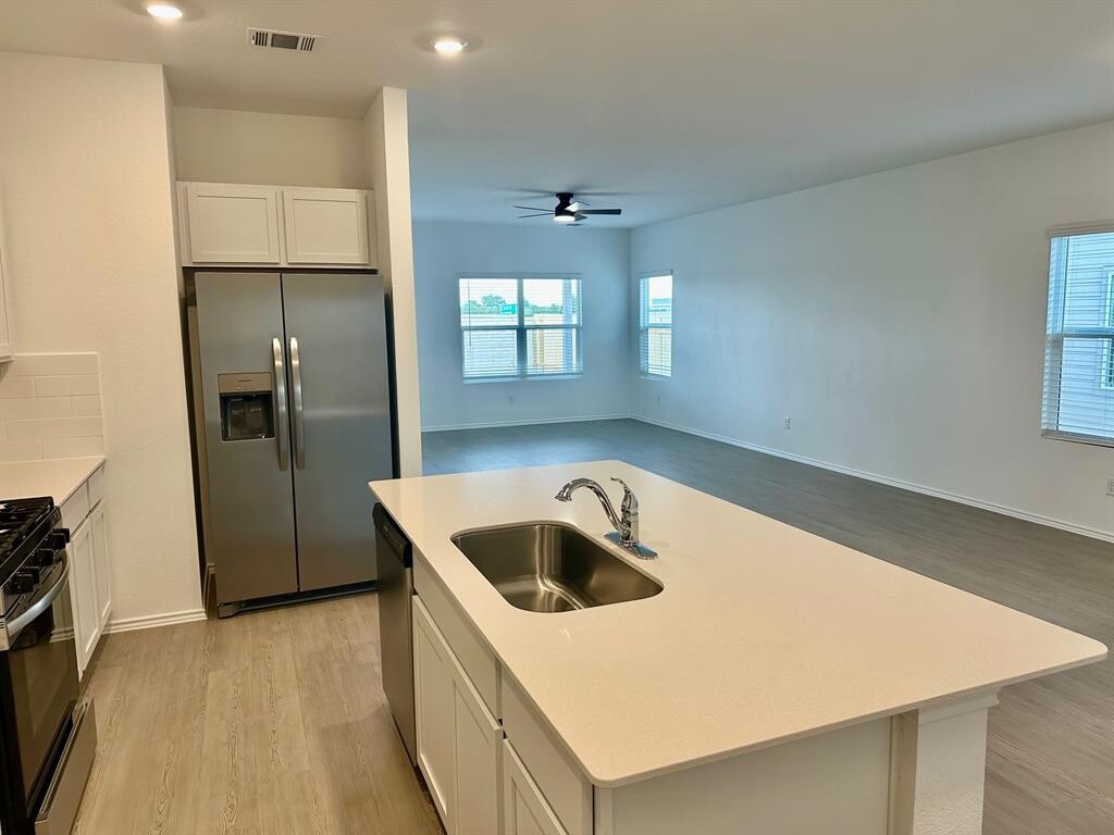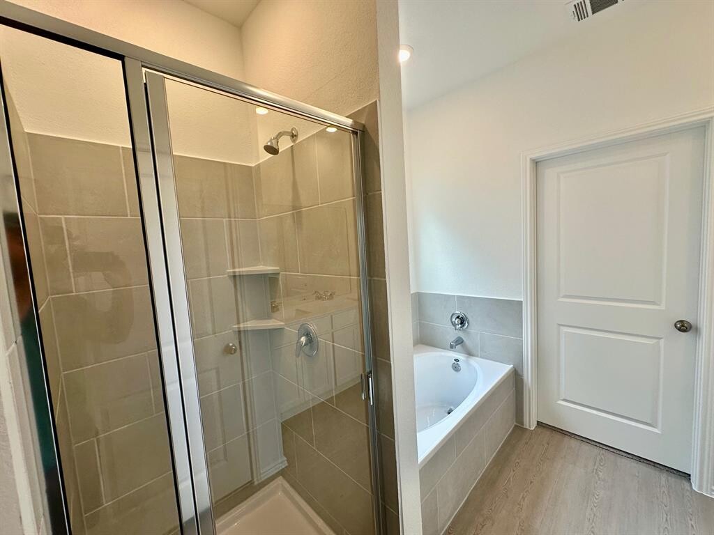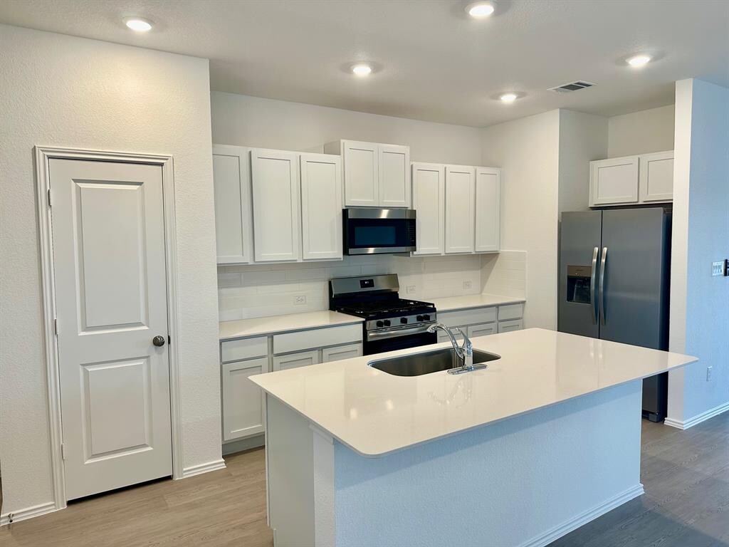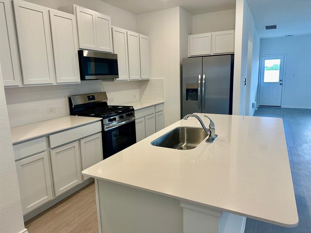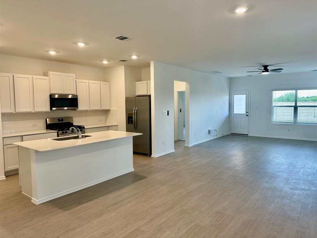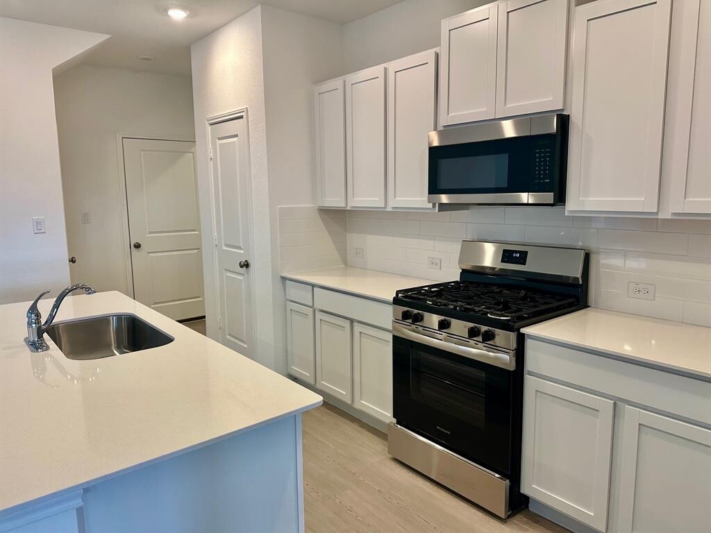 Come rent this spacious and stylish brand new 5-bedroom, 3.5-bath home that offers the perfect blend of comfort and convenience! This home has an open floorplan with modern finishes. Primary suite is on the main floor featuring a garden tub, double vanity, separate shower, and large walk-in closet. All brand-new appliances are stainless steel and there is even full-size washer/dryer. Upstairs has living area with 4 bedrooms and 2 full bathrooms. All bedrooms come with ceiling fans. Also, for added security each door has security camera. Out back there is covered back porch perfect for BBQs and entertaining and also the backyard is full fenced. Don't miss this opportunity to live in a brand-new home with all the upgrades! Schedule a showing today!