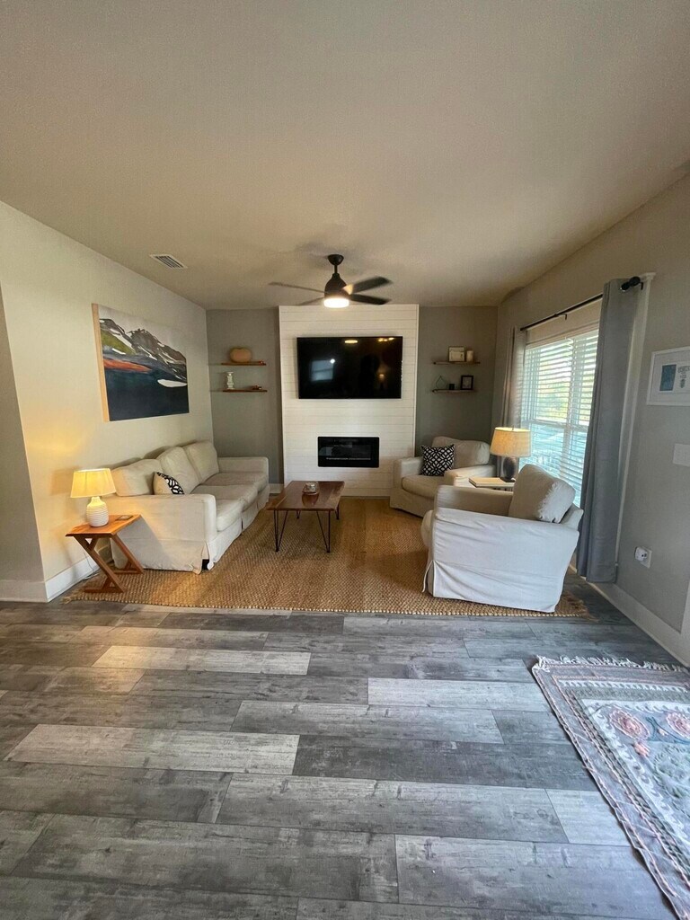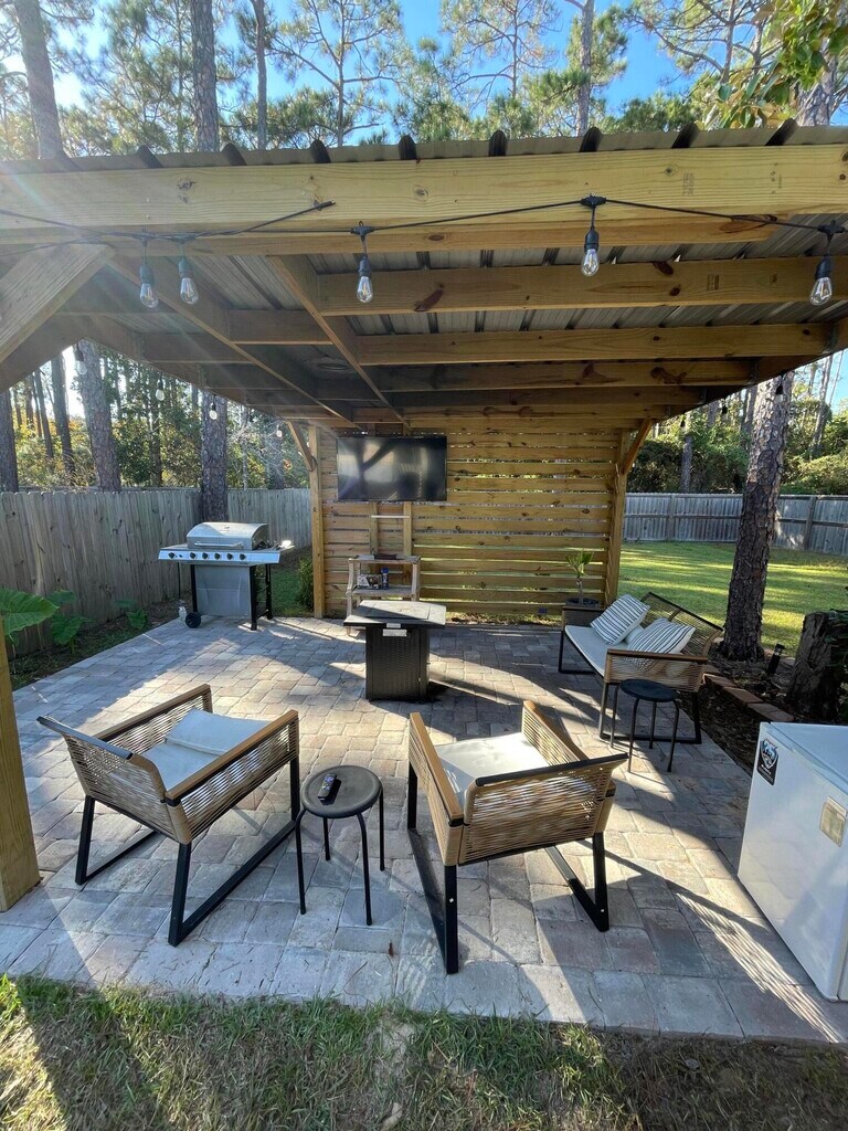This perfectly maintained cottage has one of the best outdoor living setups you will find. The large covered patio was professionally built and wired by a licensed electrician. The space is outfitted with two mounted TVs, mini fridge to put 6 packs of soda in... string lights, and a ceiling fan. It is the ultimate game-day or family friendly space. Inside, every system is in excellent working order and the home has been consistently serviced and maintained. The front porch was recently painted and stained, and the backyard features a paver walkway leading directly to the covered patio. The yard is fully fenced, manicured, and ideal for anyone with pets. Cute dogs only.