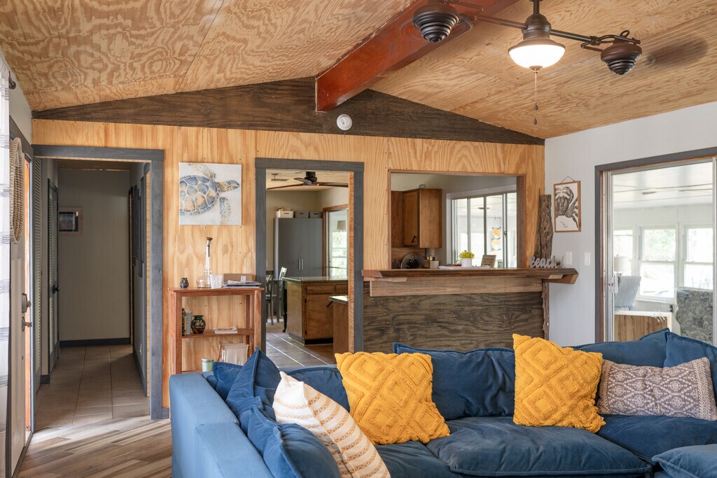 Rehabbed ranch style home that sits on an oversized lot with room for boat and RV parking on a dead end street. This 3 bedroom, 2 bath home has it all! You have the option of buying furnished so just pack a suitcase. With tile throughout you do not have to worry about water and sand on the flooring after spending a day at one of the near by beaches. Livingroom: Tile flooring with a vaulted ceiling that opens to the kitchen with a cypress oak bar top that was fished out of the Apalch River thought to be over 550 years old. There are two large sliding doors that lead to the sunroom. Three large windows (two open) give this room plenty of natural light. Kitchen: Granite countertops provide plenty of space to cook. There is a second bar on the dining room side so guests can sit and chat. The kitchen is large enough to add an island is you wish or we can leave our portable island. Dining Room: This is open to the kitchen with a large picture window at the end of it that pours natural light into the kitchen. There is a sliding glass door that leads to the sunroom. Hall Bathroom: Lots of storage was added with the renovation of this hall bath. It has a tub with new gray tiling. The toilet is Kohler Cimarron Chair Height with a bidet optional handle. The barndoor covers the opening with several inches on each side of the door for privacy. Bedroom 1: First room on right fits a queen bed with nightstands on each side very comfortably. Large windows provide plenty of natural light and wood blinds for evening. Tile wood look flooring with a ceiling fan with remote option to keep you cool. Bedroom 2: This room as two sets of bunkbeds with as dresser leaving plenty of floor space for a storage drawer that is tucked under one of the bunks. Two separate windows give lovely cross breeze in the cool months. The fixture is a ceiling fan with remote option. Bedroom 3 (Primary): This room fits a king bed with two nightstands on each side and a dresser very nicely. The closet is big enough to walk in and store a dresser if wanted. This room as an attached bath that is one of my favorite features in the house. The farmhouse style vanity adds a nice touch to a more contemporary style walk in shower (yes zero steps) with a large custom shampoo niche. The rain head is a nice option but a standard shower head is also present for the option with a handle. The toilet is a Kohler Cimarron chair height with a bidet optional handle. Upgrades: Wood Blinds Throughout Spray Foam Insulation in Attic Water Softener System HVAC 2021 Metal Roof with Hurricane Clips 2017 New Windows (hurricane rated) 2022 Large Sunroom with heat and air (623 sq ft) Laundry Room in attached Garage Call today for a private showing