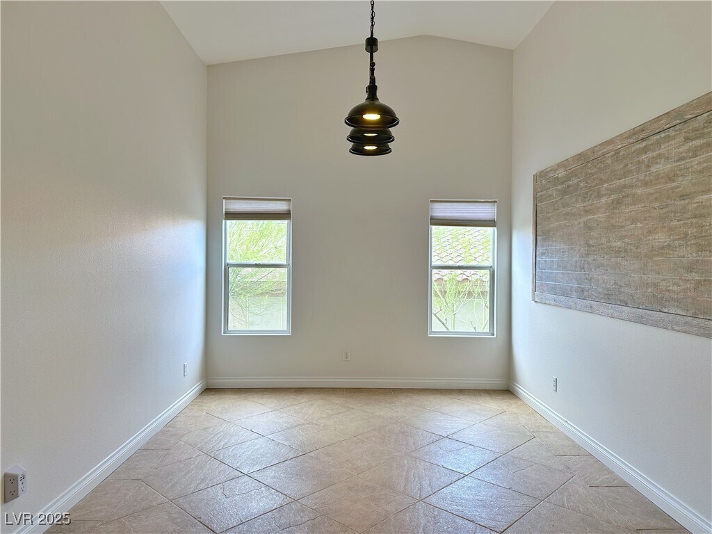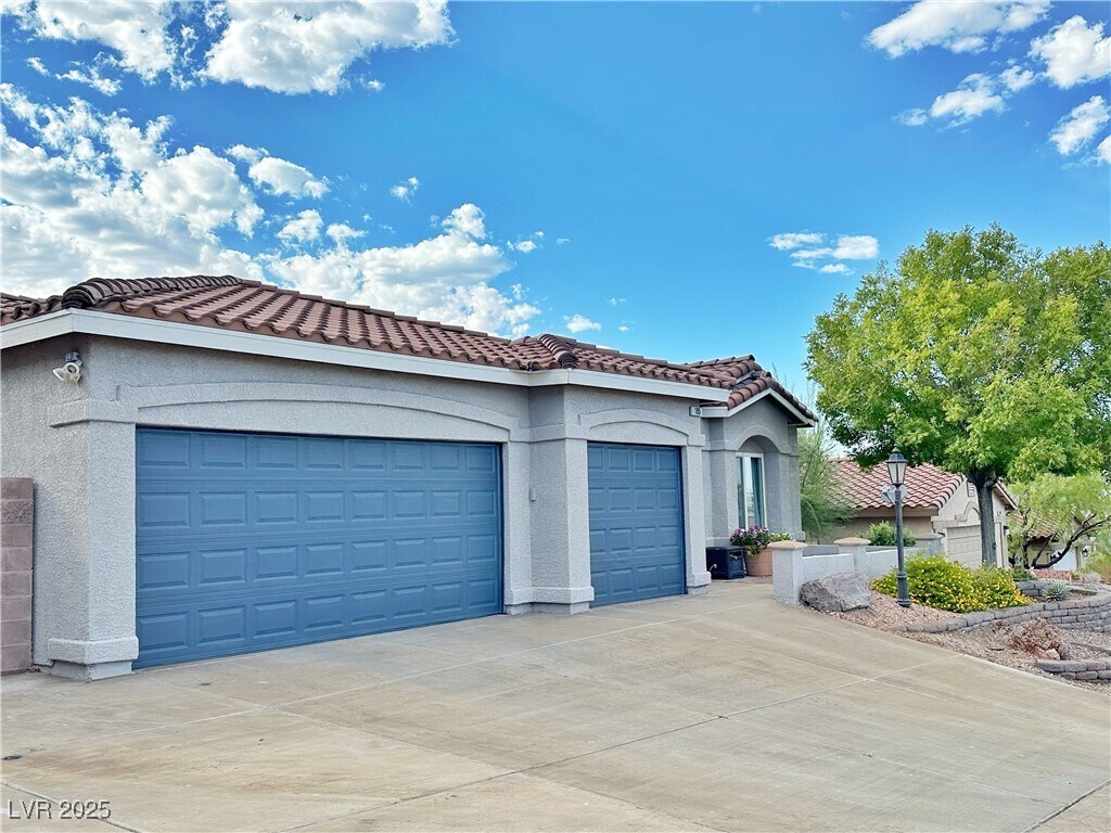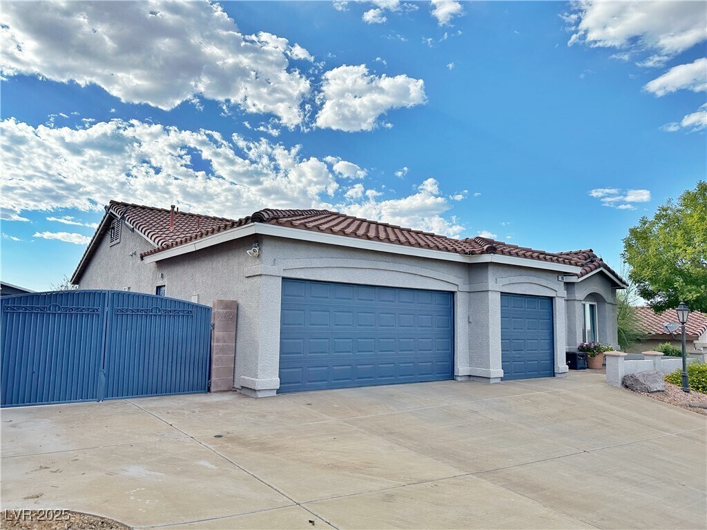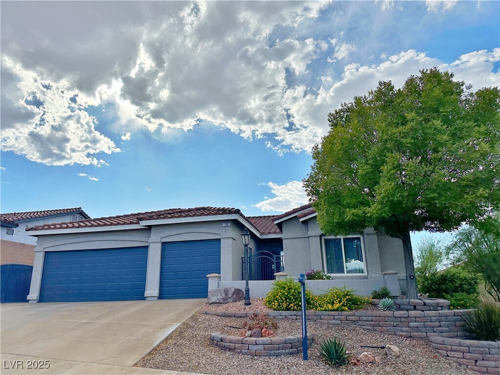 This is one of the most well-maintained and elegant single-story home boasts a blend of comfort and functionality in Henderson. The property features an open floor plan with high end tile flooring through out, vaulted ceilings, window coverings, luxurious light fixtures, and a spacious living room, and a separate formal dining area for entertaining. The kitchen has a big island, granite countertops, a bay window breakfast nook and stainless steel appliances. The primary bedroom has generous walk-in closet and a large master shower room and upscaled plumbing finishes. The property has fresh paint throughout, and what a relaxing private backyard with city and mountain views, cover patio, artificial grass, fruit trees, and a shred for gardening tools! The house has an expansive three-car garage with built-in storage and gated RV parking with water and electricity.