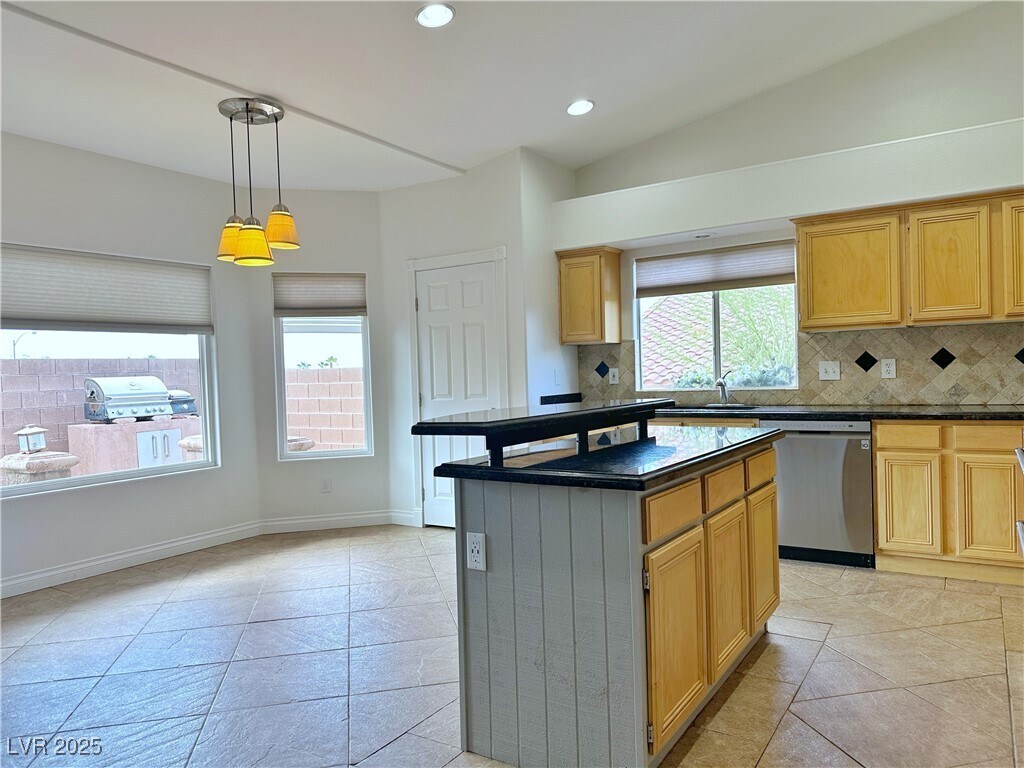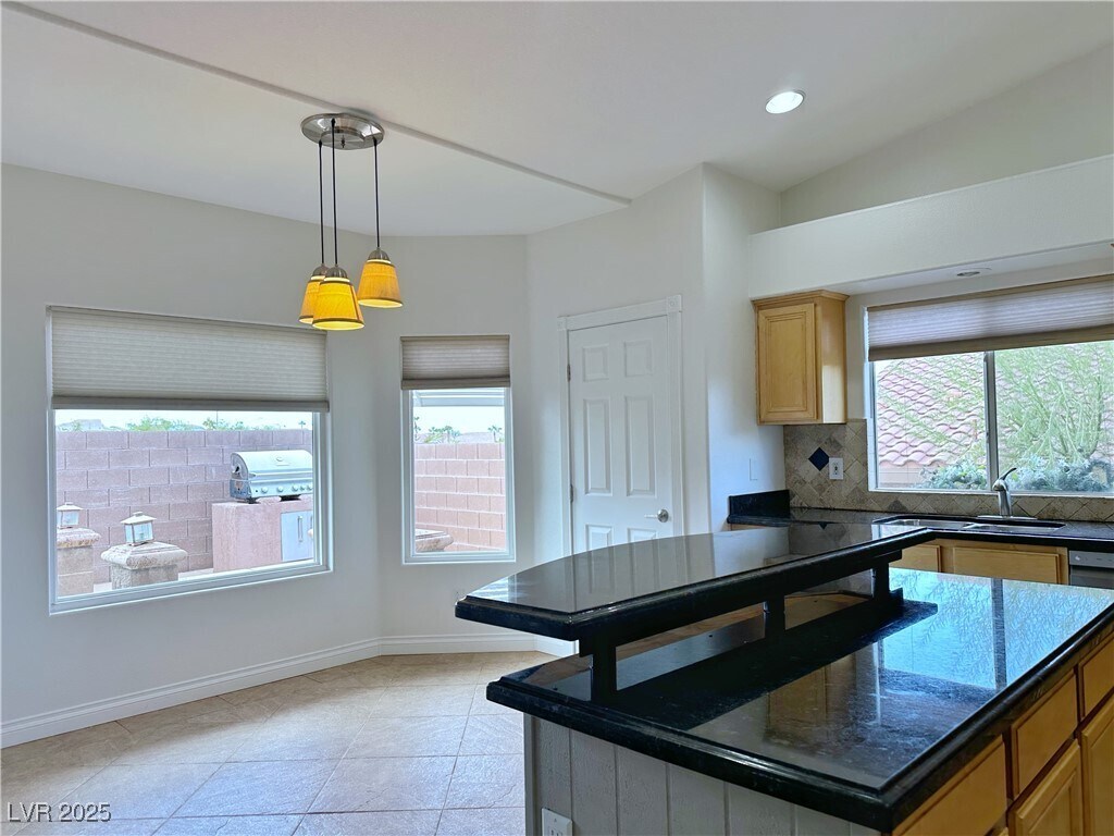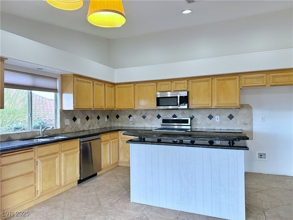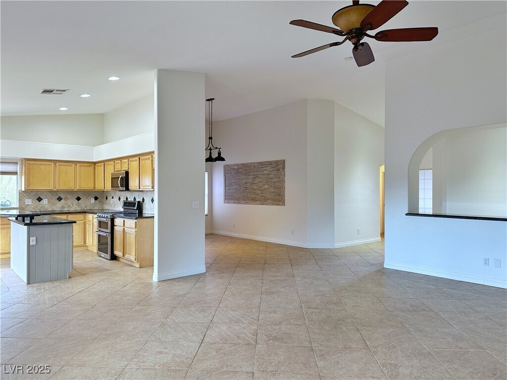 This is one of the most well-maintained and elegant single-story home boasts a blend of comfort and functionality in Henderson. The property features an open floor plan with high end tile flooring through out, vaulted ceilings, window coverings, luxurious light fixtures, and a spacious living room, and a separate formal dining area for entertaining. The kitchen has a big island, granite countertops, a bay window breakfast nook and stainless steel appliances. The primary bedroom has generous walk-in closet and a large master shower room and upscaled plumbing finishes. The property has fresh paint throughout, and what a relaxing private backyard with city and mountain views, cover patio, artificial grass, fruit trees, and a shred for gardening tools! The house has an expansive three-car garage with built-in storage and gated RV parking with water and electricity.