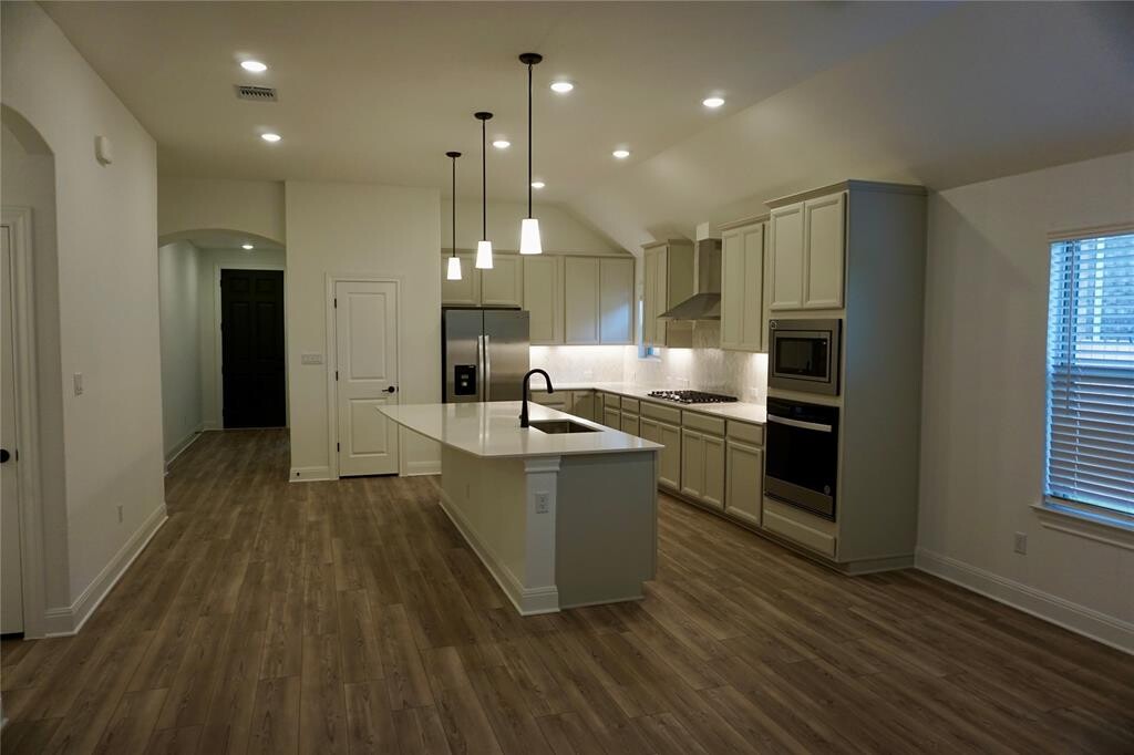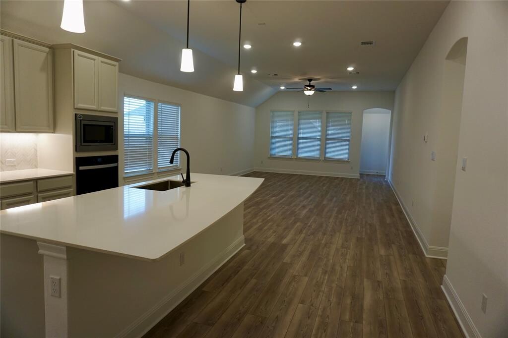 Amazing opportunity - 2 year old rental home with unbeatable storage, packed with upgrades like stainless steel appliances, mini blinds, wood look tile, select hard ware upgrades, spacious yard with covered back porch. Hill Country view in oversized, fenced in backyard, with premier live oak in side yard w/ garage access. 3 car garage, double pantry, double entry closets, double primary closets (his/hers). Accommodating layout, with open kitchen/dining/living with 5 seats at the center island, under cabinet lighting, and upgrades galore. Large primary with double sink and walk in shower with tub and 2 closets, w/ linen closet. Front bedroom is ensuite with full bathroom and walk in closet, mother-in-law style. The other two bedrooms are centrally located, by the other full bathroom with double vanity, deep closet and laundry area. All appliances included. Accommodating owner. Neighborhood has pool, trails, and closes access to HEB, Bar-w shopping, 183a, the Northline Project, 29, 2243, and i35 on the east. 40 mins to downtown and airport.