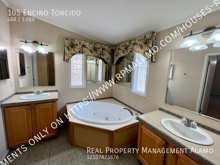 COME VIEW this stunning home in the charming community of Adkins, TX! This spacious 4-bedroom, 3-bathroom residence offers 2,356 sq. ft. of comfortable living space designed for both style and function. Step inside to be greeted by soaring ceilings and stylish vinyl wood flooring that flow throughout the main living areas, creating an open and welcoming atmosphere. The bedrooms feature plush carpeting, offering a warm and cozy retreat. The chef-inspired kitchen comes equipped with modern appliances, including a stove top, microwave, double wall oven, and dishwasher—perfect for creating and sharing delicious meals. Your primary suite is a true haven, complete with two spacious walk-in closets and a luxurious bathroom featuring a garden tub, dual vanities, and generous storage—offering a spa-like experience at home. A convenient Jack and Jill bathroom connects two of the bedrooms, providing privacy and ease for family or guests. Additional highlights include washer/dryer connections, a detached 2-car garage, and both front and back decks for outdoor enjoyment. This is a home you won’t want to miss! For more information, e-mail us at . Thank you! *NO SHOWINGS AT THIS TIME** Under Make Ready – Freshening Up! Residents just moved out and we’re working hard to get it ready. Thanks for your patience! Apply here: RPM Alamo is proud to offer deposit-free living to qualified renters through Obligo! We understand that moving costs can add up, so we want to extend financial flexibility to our residents. When you move in with us, you can skip paying a security deposit and keep the cash for activities you care about. Learn more about the benefits of deposit-free living with Obligo’s brochure or on their website. All Real Property Management Alamo residents are enrolled in the Resident Benefits Package of their choice Tier 1 $55 or Tier 2 $70 monthly which includes HVAC air filter delivery (for applicable properties), credit building to help boost your credit score with timely rent payments, $1M Identity Protection, utility concierge service making utility connection a breeze during your move-in, our best-in-class resident rewards program, and much more! More details upon application. **The information contained in this advertisement is subject to change. The terms of any lease, should you execute a lease with RPM, are found solely in the Lease Agreement itself, along with any applicable addenda. Situations that may affect change include, but are not limited to an applicant's credit rating which may affect the required security deposit amount, and new information provided to us regarding a unit that we did not know at the time we placed this advertisement.***
