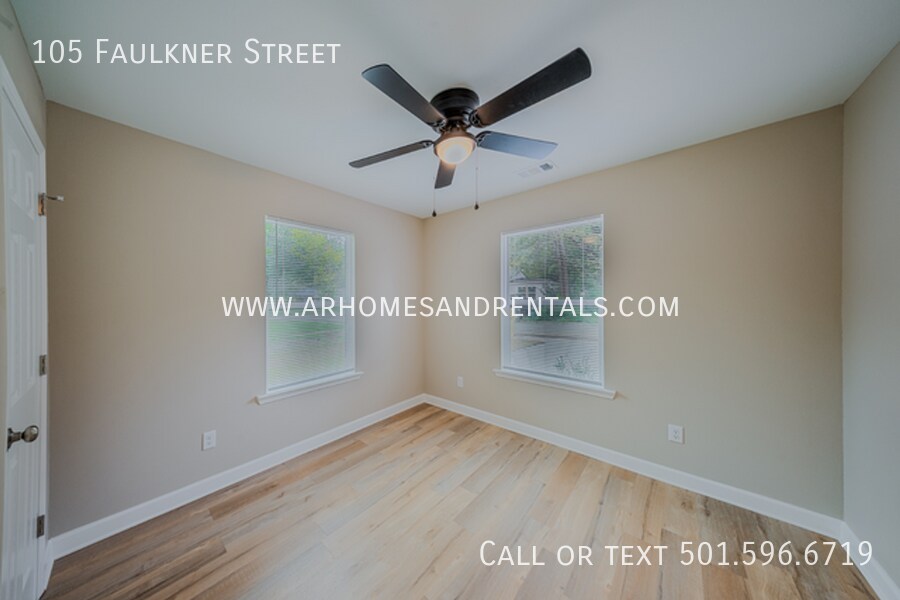 105 Faulkner Street Jacksonville, AR 72076 Don't miss out on the opportunity to make 105 Faulkner Street your new home. Contact us at: today for more information on leasing options or apply now at our direct website: Features: - Single-family home - Master bath - Granite countertops - Electric stove - Stainless steel appliances - Microwave - Updated kitchen and bathrooms - Central heat and air - Washer and dryer connections - On-site laundry facilities - Large, fenced-in backyard - Patio - Porch - Off-street parking - Electric water heater - Ceiling fans Ceiling Fan Central Heat And Air Electric Stove Electric Water Heater Fenced In Back Yard Granite Countertops Large Back Yard Laundry Facilities On Site Laundry Unit Hook Ups Newly Constructed Single Family Home Updated Bathroom Updated Kitchen Washer And Dryer Connection
