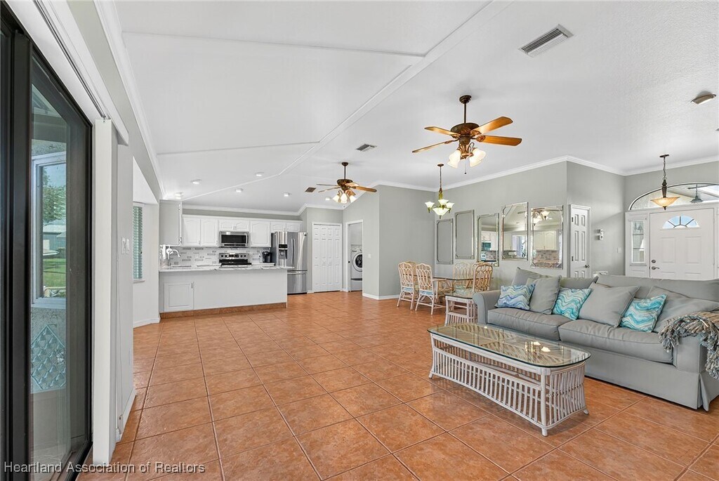 Experience the best of Florida lakefront living at 105 Fern Court in Lake Placid. This beautifully maintained 3-bedroom, 2-bath home sits on a peaceful canal leading directly to the crystal-clear waters of Lake Francis, where you can spend your days boating, fishing, or simply soaking in the views. Inside, soaring vaulted ceilings, a cozy fireplace, and a fully equipped kitchen create a warm and inviting space to gather with family and friends. Step outside to enjoy your screened lanai, spacious deck, and private dock with boat lift, or rinse off in the outdoor shower after a day on the water. With an oversized garage, RV hookups, workshop space, and nearly ¾ of an acre dotted with fruit trees, this property offers plenty of room to relax and play. Tucked away in a quiet neighborhood yet just minutes from shopping and dining, this home blends serenity, convenience, and adventure—making every day feel like a vacation.