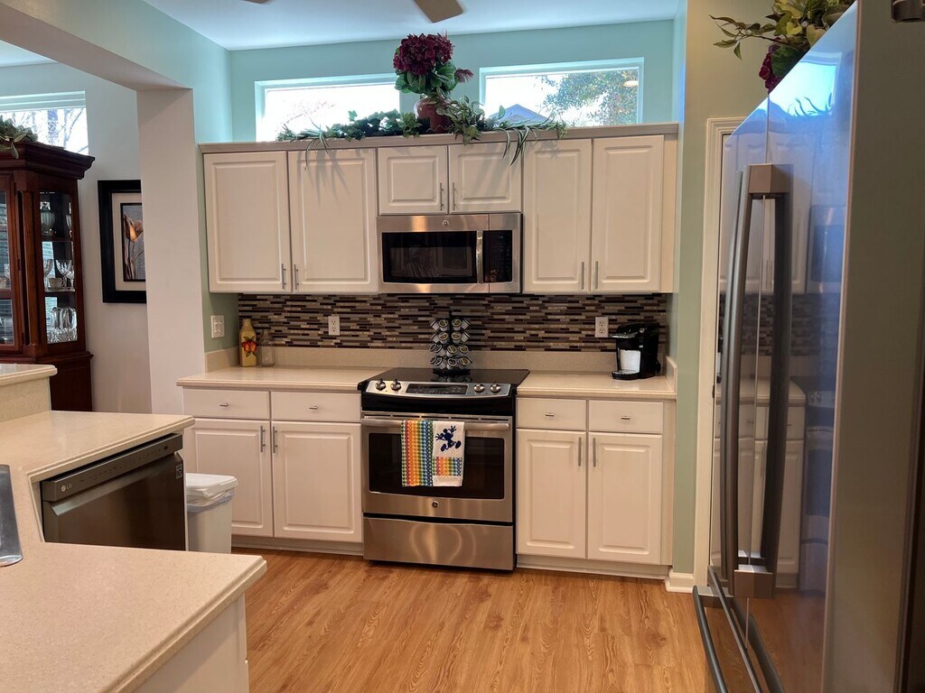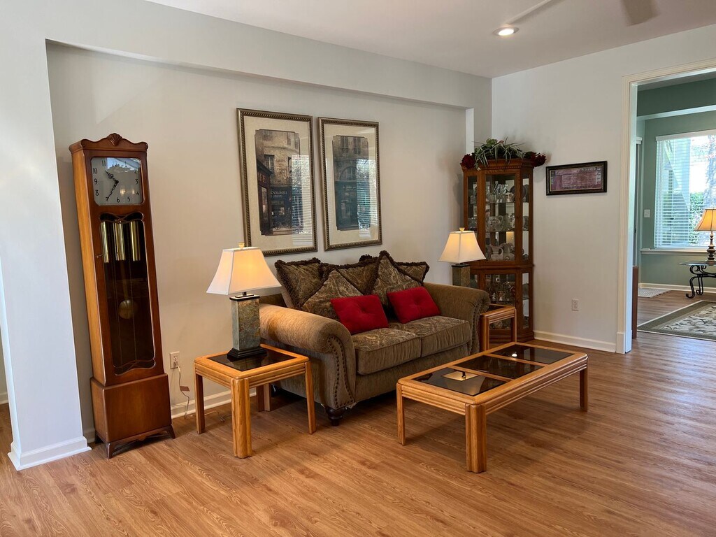 Charming 2 Bedroom, 2 Bath Home in Sun City This beautiful unfurnished home features an open floor plan with wood flooring throughout the main living areas. The kitchen is equipped with stainless steel appliances and flows seamlessly into a spacious Carolina room, which opens to a screened lanai and adjacent outdoor patio—perfect for relaxing or entertaining. Additional features include: Two-car garage with ample cabinet storage Landscaping included