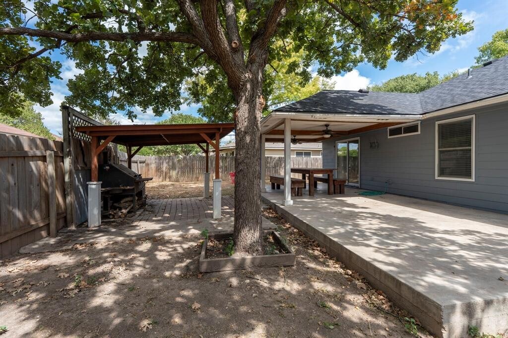 Recently updated single-story home in Kyle, TX, featuring 4 bedrooms and 2 bathrooms. This residence offers fresh interior and exterior paint, remodeled primary and guest bathrooms, and numerous modern upgrades, including new appliances, window blinds, ceiling fans, and updated electrical and plumbing fixtures. Enjoy outdoor living on the extended covered patio with a dedicated BBQ area, large picnic table and expanded concrete slab perfect for entertaining. The home is equipped with gas heating, cooking, and water, along with an HVAC system upgraded just six years ago. Flooring includes durable ceramic tile throughout most of the home, complemented by laminate in two bedrooms. Hays CISD schools: Kyle Elementary, Barton Middle School and Hays High School. Vacant and ready for immediate move-in, this updated single-story home in Kyle, TX offers versatile living space and comfort. The converted garage provides an ideal second living area or potential 4th bedroom for those needing additional room. Enjoy outdoor living with a spacious covered patio, on-site BBQ pit, and picnic table perfect for gatherings and relaxation.