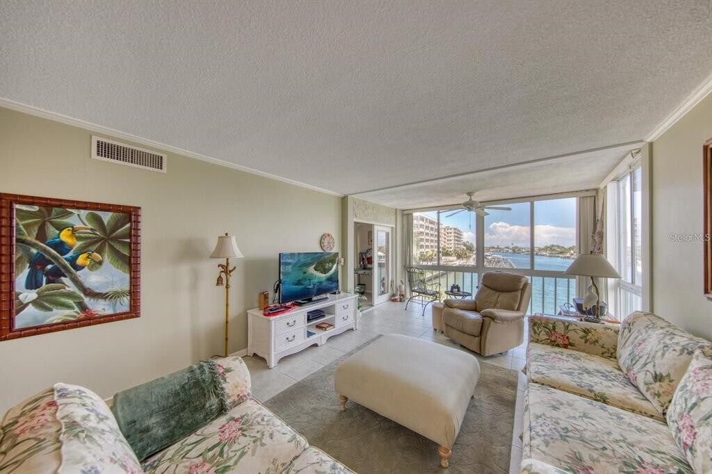 Spectacular water views from this 2 bedroom and 2 full bath fully furnished rental. Located at the Islander Complex,this home is very nicely appointed with all modern updates. There is a water view from every room in this condo. This property is located on Island Estates. This community has a Publix grocery,bank,restaurants,gas station and is 20 minutes to 2 International air ports. This complex has a laundry room on every floor. There is a large heated pool,spa and shuffle board and all just a short stroll to our famous Clearwater Beach. This is a 55 plus complex. No pets allowed. This unit comes with 1 assigned under building parking spot and ample guest parking. MLS# TB8400694