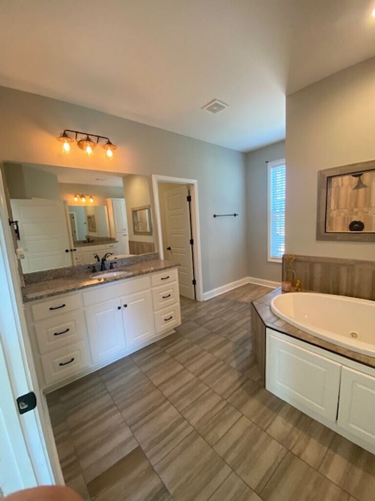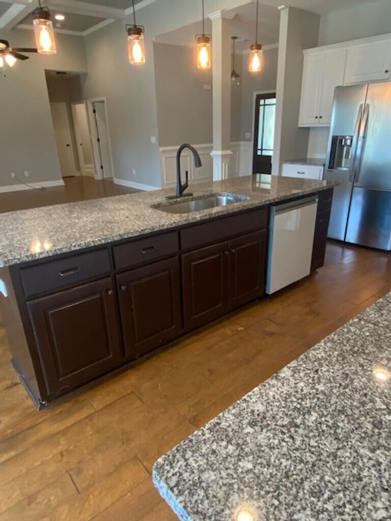MOVE-IN-SPECIAL, $400 2250 Square feet 4 Bedroom, 2 Full bath, 1 Half bath 1.5 Arcs Front and Back Patios The back Patio has an outside fireplace 2" Window Blinds Granite counter tops through out Tile, Wood and Carpet Flooring Formal Dinning Room or Office, Kitchen breakfast area Large Pantry Very Large Laundry room High Ceilings with Ceiling Fans Custom Showers 2 Car Garage **NO PETS**