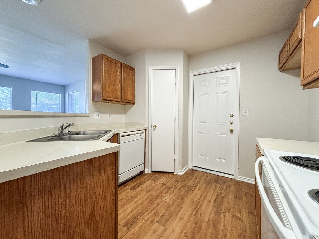 **RENT SAVINGS OF $750!! First 3 months of rent is reduced to $950, 4th month rent increases to $1200 for the next 12 months. (15 month lease)** This spacious three-bedroom duplex offers the perfect blend of comfort and convenience just outside city limits. Featuring durable vinyl flooring throughout, an open-concept kitchen with a cozy breakfast nook, and ample cabinet space for all your storage needs. The property includes a single-car garage plus additional driveway parking for two vehicles. Enjoy a fully fenced backyard—ideal for pets and outdoor gatherings—providing privacy and peace of mind.