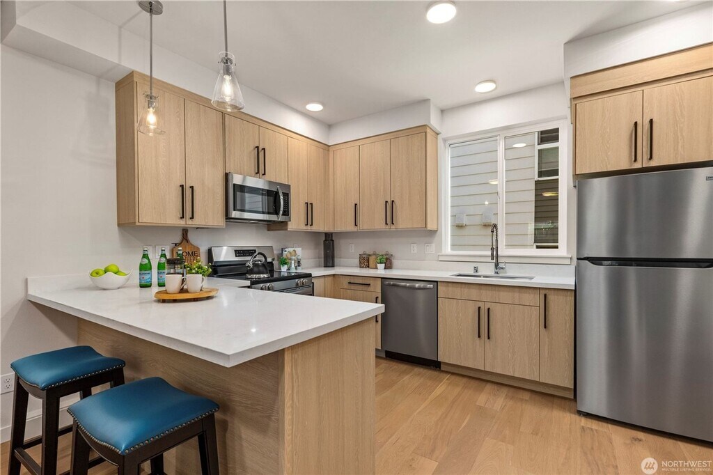 Experience exceptional new construction in the heart of highly walkable Fremont. This contemporary home offers 1 parking spot and an unbeatable location—just minutes from the Burke-Gilman Trail, Fremont Cut, and major tech employers like Google and Adobe. Step inside to an open-concept layout filled with natural light. The chef-inspired kitchen features a large peninsula island, quartz countertops, stainless steel appliances, and under-cabinet lighting—perfect for cooking and entertaining. Efficient mini-split systems provide year-round comfort. Enjoy two private outdoor spaces: a main-level deck surrounded by lush greenery and a top-floor retreat deck off the spacious primary suite with a spa-like bathroom. The lower level offers two large bedrooms, ideal for guests, a home office, or both. With a Walk Score of 93, you’ll love being moments from Fremont’s best parks, boutique cafés, restaurants, and transit options. This home truly blends luxury, location, and lifestyle. 12 Month lease Okay But 16-18 Month Lease Preferred Required Resident Benefit Program for an additional $36.50 per month. Program details and benefits can be found at