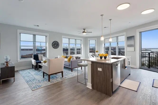 Welcome to modern living at its finest in this stylish apartment located at 105 North Street, Bayonne, NJ. Unit #201 offers 827 square feet of thoughtfully designed space, crafted in 2019, ensuring contemporary comfort and convenience. Step inside to discover an open-concept layout that seamlessly blends the living, dining, and kitchen areas, creating an inviting atmosphere for relaxation and entertainment. The kitchen is equipped with sleek stainless steel appliances, ample cabinetry, and elegant countertops, perfect for culinary enthusiasts. The spacious bedroom provides a serene retreat, featuring large windows that flood the space with natural light. The well-appointed bathroom boasts modern fixtures and finishes, offering a spa-like experience at home. Additional highlights include in-unit laundry facilities, central heating and cooling for year-round comfort, and ample storage solutions to keep your living space organized and clutter-free. Residents of this building enjoy access to a range of amenities designed to enhance their lifestyle. Whether it's a fitness center, communal lounge, or outdoor spaces, there's something for everyone to enjoy. Located in the heart of Bayonne, this apartment offers easy access to local shops, dining, and public transportation, making it a convenient choice for those seeking both comfort and accessibility. Don't miss the opportunity to make this contemporary apartment your new home.