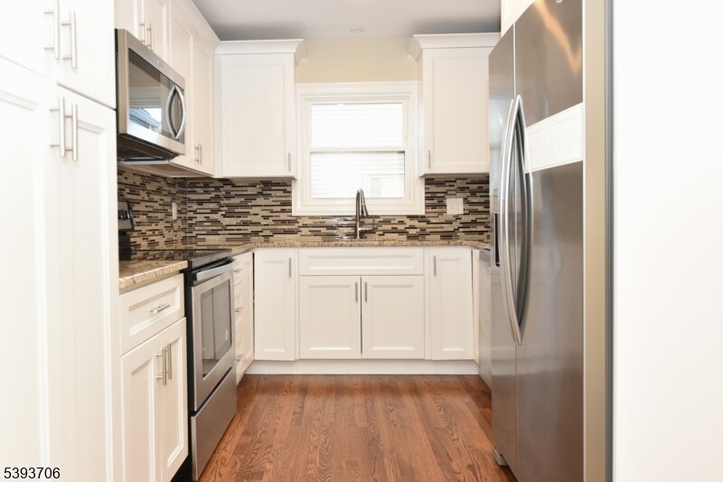 Wonderful large unit in meticulous condition! This unit has hardwood floors and LED recess lights throughout. Large living room and an additional large family room. Modern kitchen recently renovated with stainless steel appliances and granite countertops. All three bedrooms are nice sized with recess lights and good closet space. Primary bedroom with primary bathroom and walk in closet. A den/office with access to the laundry hook ups could also but used as a 4th bedroom. Central Air. Off Street Parking. Turn key ready.