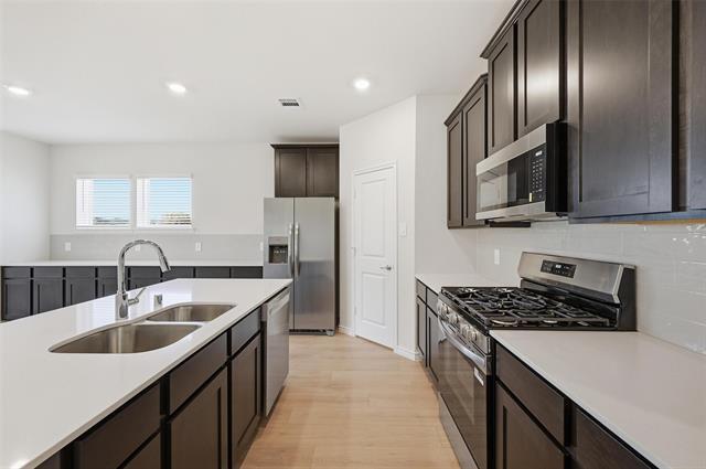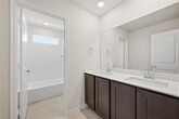 *NEW Construction Complete* Enjoy the benefits of brand-new construction with modern finishes, efficient design, and a fresh, never-lived-in feel. This spacious two-story, 5-bedroom home offers a highly functional layout with two bedrooms downstairs and three bedrooms upstairs, perfect for flexible living arrangements. A completely updated, modern single-family detached home offers an open-concept featuring engineered hardwoods, and open concept floor plan. The kitchen is a chef's dream, boasting sleek granite countertops, stylish backsplashes, stainless steel appliances, and a breakfast bar with additional cabinetry and storage. The primary suite is a luxurious retreat with a massive walk-in closet that includes an updated en-suite bathroom. Upstairs, a large landing of flex space looks over the living room and offers endless possibilities as a playroom, game room, or flex space. 3 additional bedrooms upstairs provide plenty of space for a large family. Step outside to a private backyard with covered patio. Attached 2 car garage with additional driveway parking available. The landlord is providing a refrigerator, washer, and dryer, making this home truly move-in ready. This home combines style, functionality, and comfort in a prime walkable location to Harper Elementary. Nearby community park, playground, and putting green!