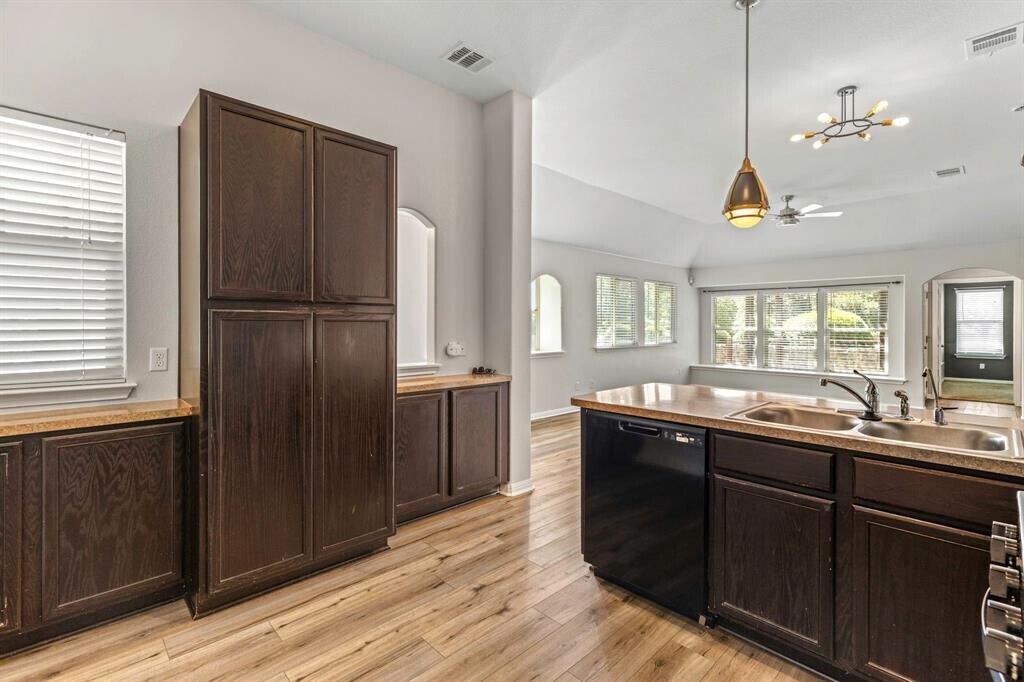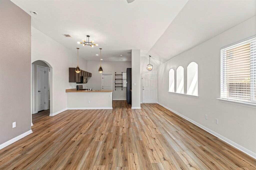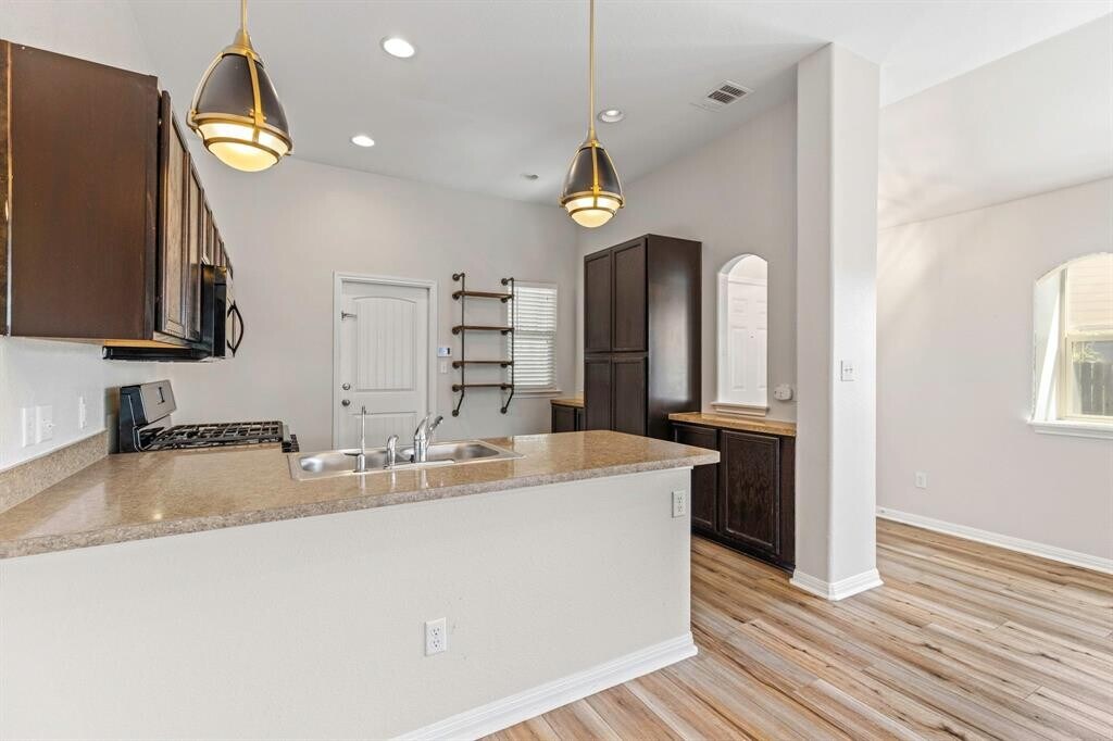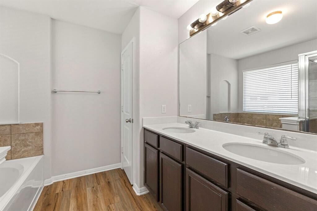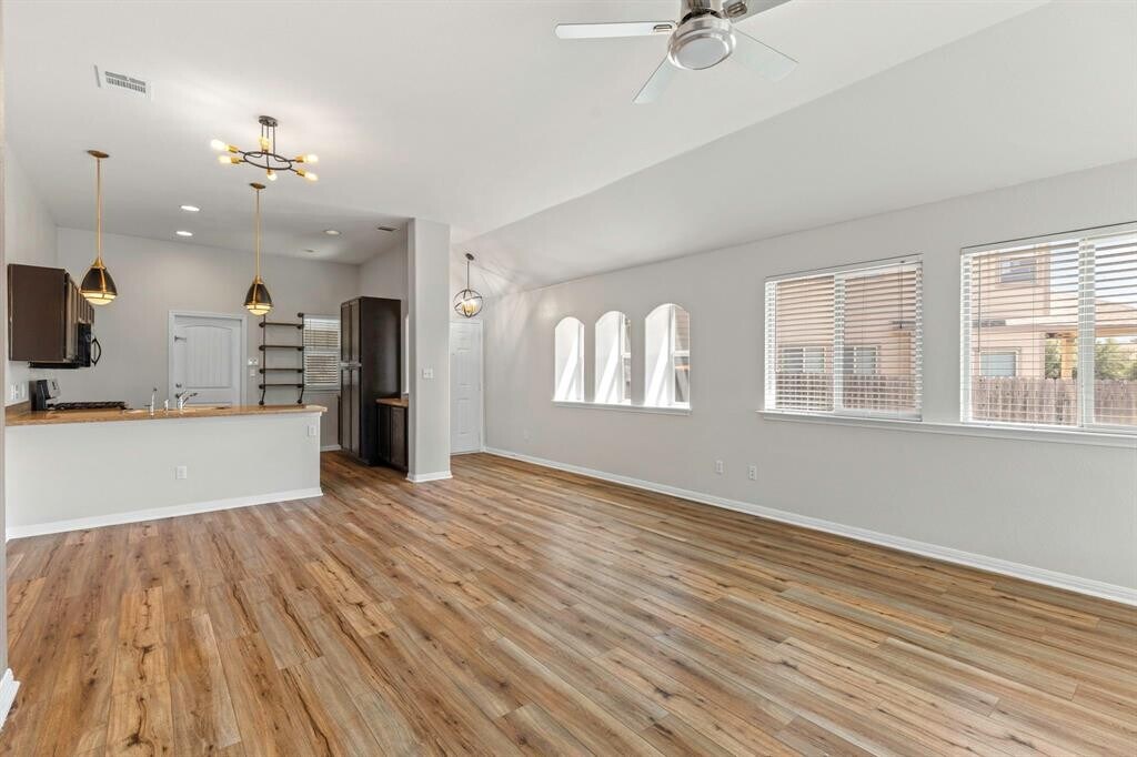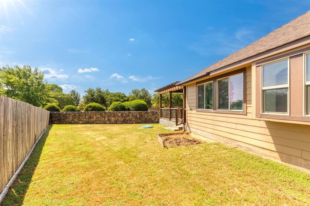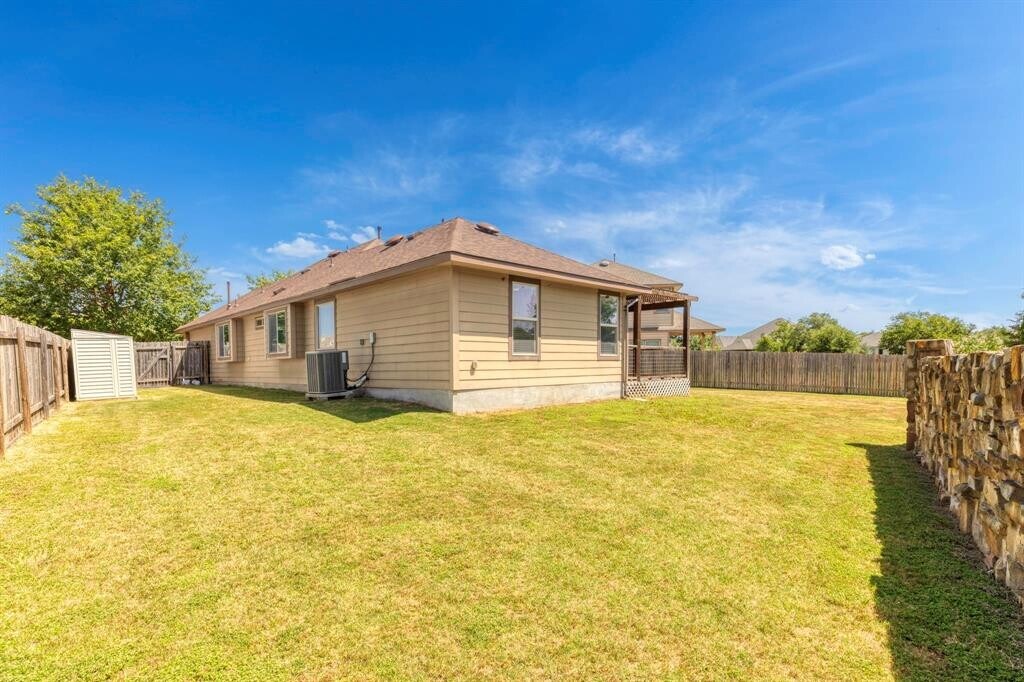 Charming, Move-In Ready, Single-Story Home on a Spacious Cul-de-Sac Lot! This thoughtfully designed home offers an open-concept layout, with the kitchen overlooking the family room—perfect for both everyday living and entertaining. Stylish & low-maintenance: Wood-look vinyl flooring flows seamlessly through the main living and wet areas. Relaxing primary suite: Features dual vanities, a garden tub, and a walk-in shower. Outdoor living: Enjoy a covered back patio that opens to a large, private backyard—ideal for gatherings or quiet evenings at home. Enjoy the plentiful community amenities including pool, playground, and hike/bike trails. Great location just minutes away to Blanco Vista Elementary and convenient to numerous shopping/dining/entertainment spots in San Marcos and Kyle. A must see!