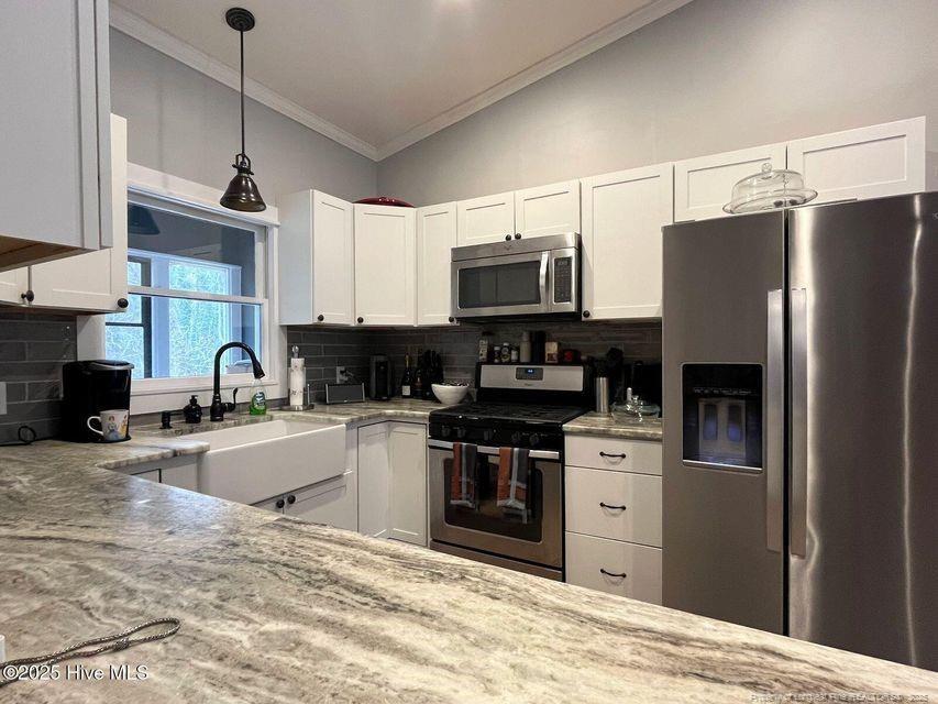 This modern and recently renovated home is located in the gated community of Seven Lakes North. Tucked away on a wooded lot offering privacy and serenity this home is sure to please. The oversized front deck is perfect for relaxing and enjoying sunsets. Enter the front door to an open and airy floor plan. The beautiful kitchen features white cabinetry, granite countertops, an island, stainless steel appliances and a gas range. There is a large pantry behind custom barn doors. The spacious main living area showcases vaulted ceiling and a gas fireplace. Sliding glass doors open to a large an exquisite Carolina room with views of the huge secluded backyard. The roomy master suite is on the opposite side of the home from the 2 guest bedrooms offering privacy. The personal touches that went into renovating this lovely and charming home will not disappoint. Tenants have access to the community pool and lakes.