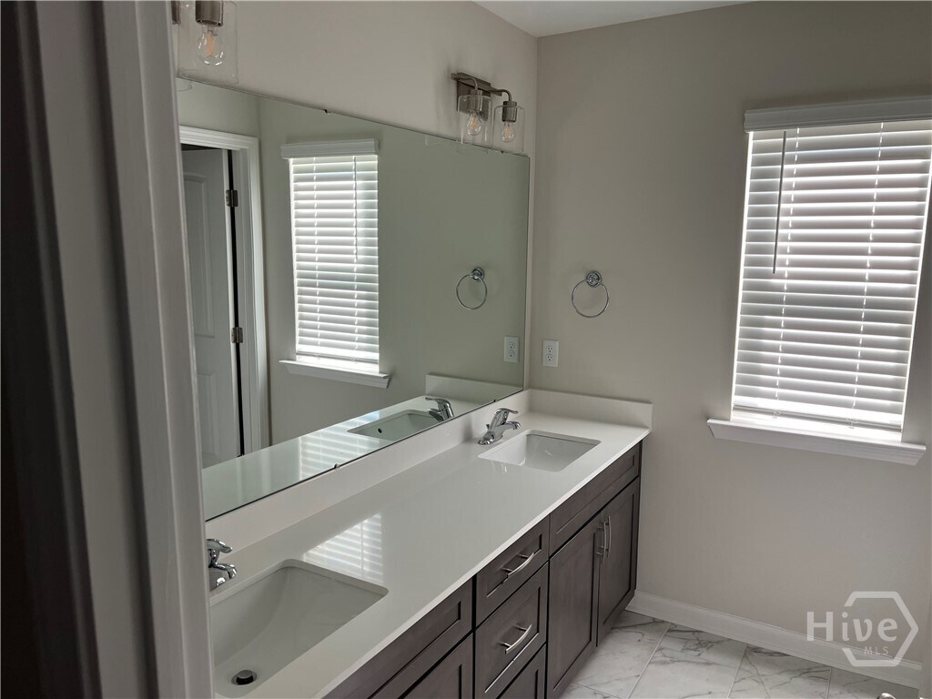 Welcome to your new Hardie Plank siding home in the amenity-rich subdivision of Laurel Grove,located in Guyton,GA,within an award-winning school district! The Elle plan offers a spacious and functional layout. The first floor features a flexible room,a kitchen with a large quartz island,breakfast area,backsplash,and an open living room. The primary bedroom is also on the first floor,complete with generous closet space and a dual vanity bath. Upstairs,you'll find four bedrooms,two full baths,and a huge loft area. Enjoy the added extras of 2” faux wood blinds in all standard windows and Smart Home technology. Laurel Grove is conveniently located near award-winning schools,with easy access to the airport,Pooler,Rincon,Savannah,and the new Hyundai plant.