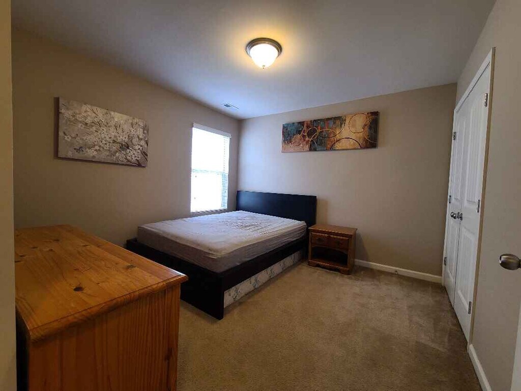 Room for rent: This beautiful brand new 3 bedroom, 2.5 bathroom home in Durham is only a 10 minute drive from Duke, downtown Durham, and Research Triangle Park. It's in a cute and friendly neighborhood that is great for bike rides and scenic walks. Vinyl flooring, stainless steel appliances, 1 big screen TV, a backyard for play, and a grill to grub! *Cats and small dogs only *Property comes fully furnished. Unable to offer unfurnished. Note: Do not visit this property without first contacting us to schedule a tour at the number below.