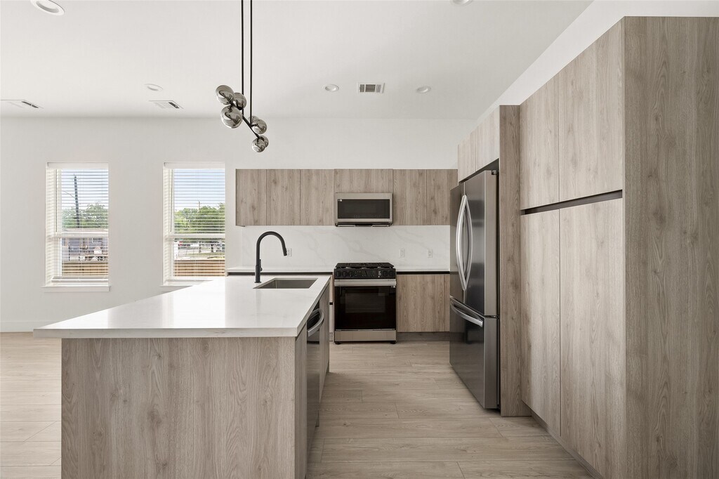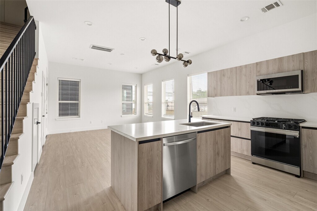 Tucked within a quiet gated community just off Yale Street,this stunning contemporary home offers 3 bedrooms and 2.5 baths,blending modern design with everyday functionality. The open-concept second floor features a stylish kitchen with quartz countertops,elegant cabinetry,a large island,and a gas range—flowing seamlessly into the light-filled living and dining areas. The spacious primary suite includes a spa-inspired bath with an oversized shower and a generous walk-in closet. Two secondary bedrooms on the first floor provide an ideal setup for guests,a home office,or family. A two-car garage adds convenience,while the location places you just minutes from Downtown Houston,Oak Forest,and The Heights,with easy access to I-45 and 610. GPS address: 4924 Yale Street,Houston,TX 77018. MLS# 44890562