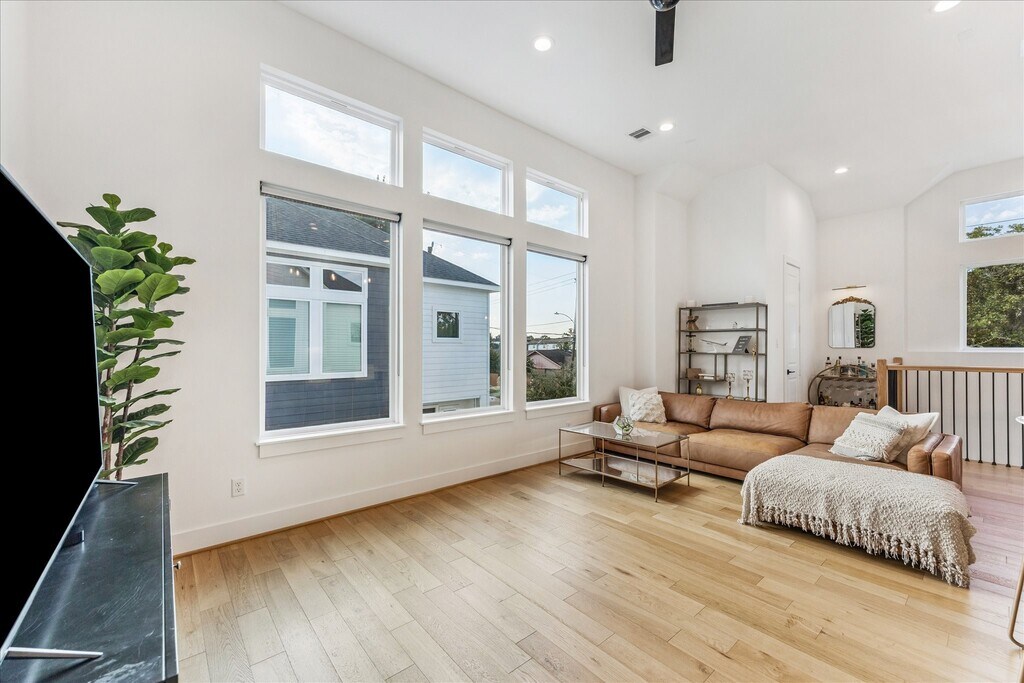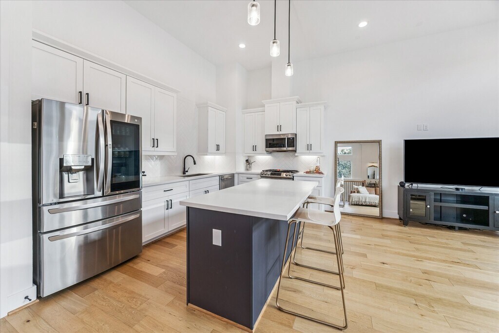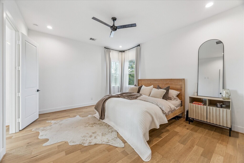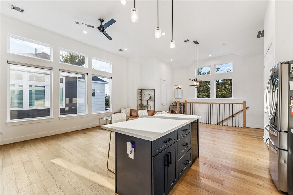 Nestled in a private enclave of 12 homes,105 W Whitney #A blends modern design,sophisticated finishes,and a functional layout in Independence Heights. Just minutes from Whole Foods,Orangetheory,and local dining,this corner unit delivers style and convenience. The first floor offers wood-look LVP flooring throughout,with two bedrooms connected by a Jack-and-Jill bath. Upstairs,12-foot ceilings and oversized windows brighten the open living and dining areas. The kitchen is complete with quartz counters,shaker cabinets,herringbone backsplash,and a stainless steel appliance package. The top floor hosts the primary suite with a walk-in closet and spa-like bath featuring dual vanities,a soaking tub,and frameless glass shower. A bonus room provides space for an office,gym,or playroom,while the private yard adds valuable outdoor living. With 3 bedrooms,2.5 baths,and a gated setting,this home offers the perfect balance of comfort,function,and location inside the Loop. MLS# 48754294