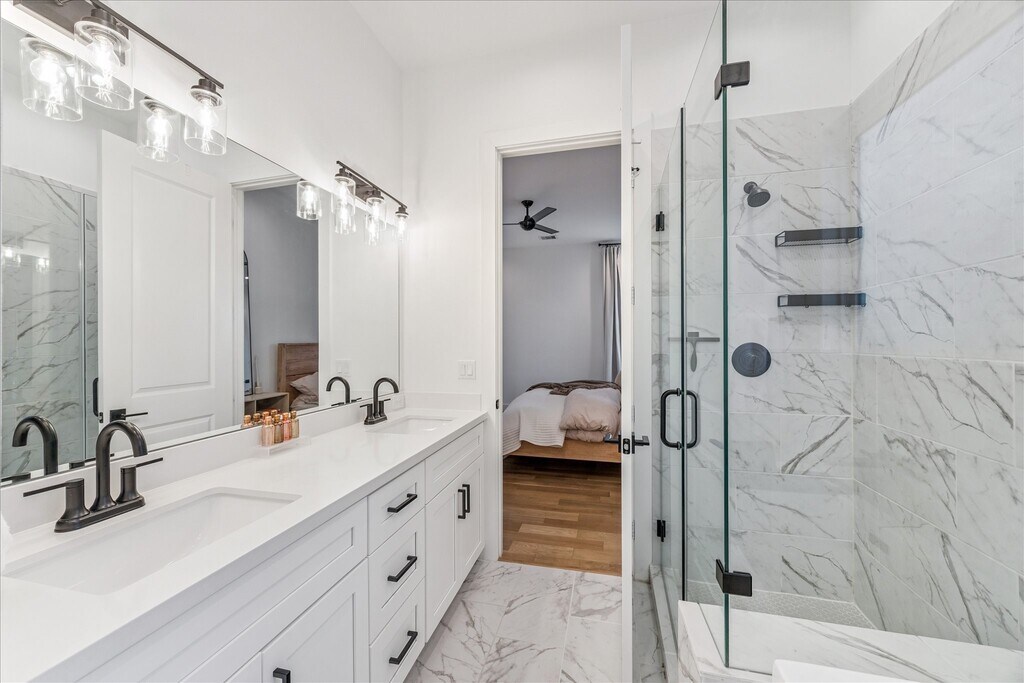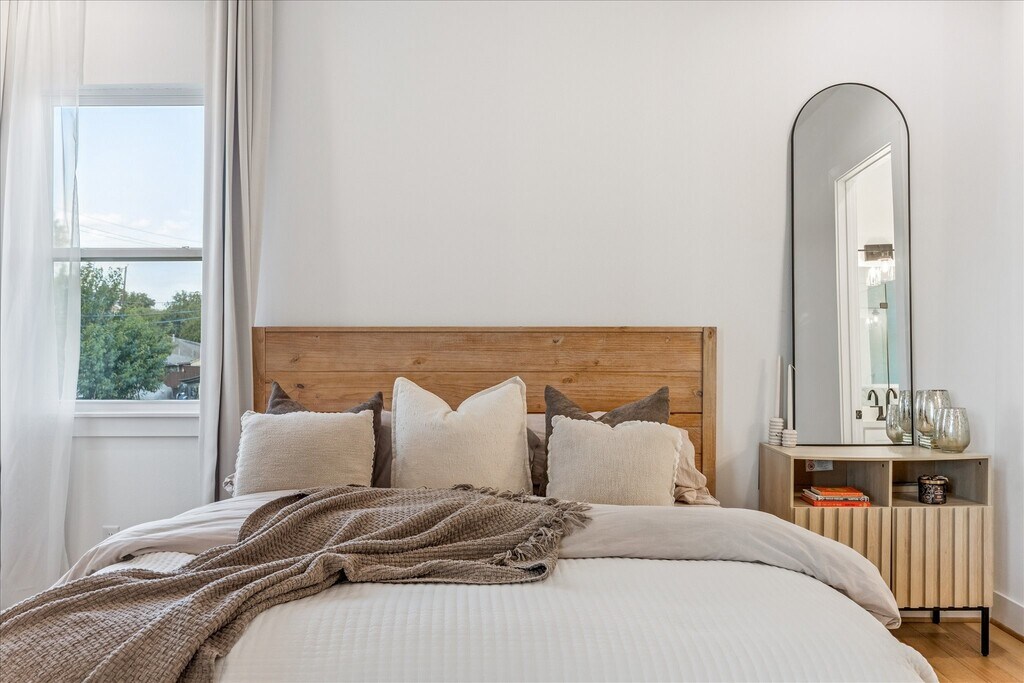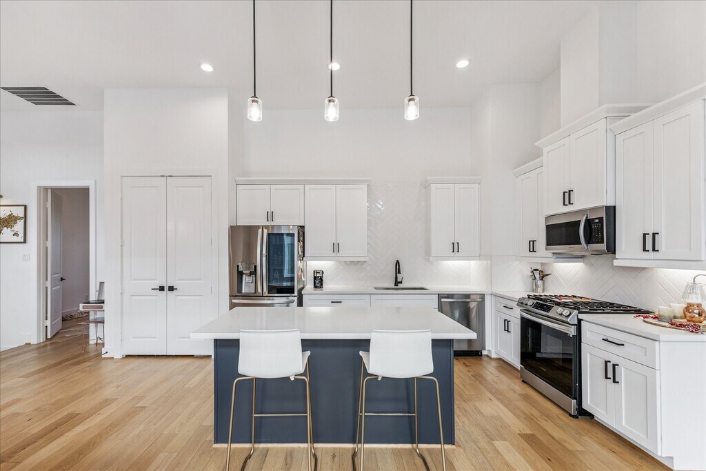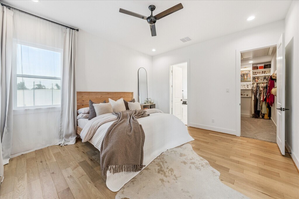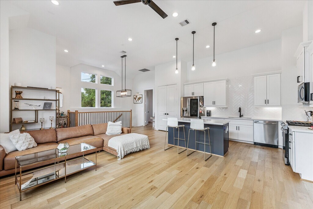 Nestled in a private enclave of 12 homes,105 W Whitney #A blends modern design,sophisticated finishes,and a functional layout in Independence Heights. Just minutes from Whole Foods,Orangetheory,and local dining,this corner unit delivers style and convenience. The first floor offers wood-look LVP flooring throughout,with two bedrooms connected by a Jack-and-Jill bath. Upstairs,12-foot ceilings and oversized windows brighten the open living and dining areas. The kitchen is complete with quartz counters,shaker cabinets,herringbone backsplash,and a stainless steel appliance package. The top floor hosts the primary suite with a walk-in closet and spa-like bath featuring dual vanities,a soaking tub,and frameless glass shower. A bonus room provides space for an office,gym,or playroom,while the private yard adds valuable outdoor living. With 3 bedrooms,2.5 baths,and a gated setting,this home offers the perfect balance of comfort,function,and location inside the Loop. MLS# 48754294