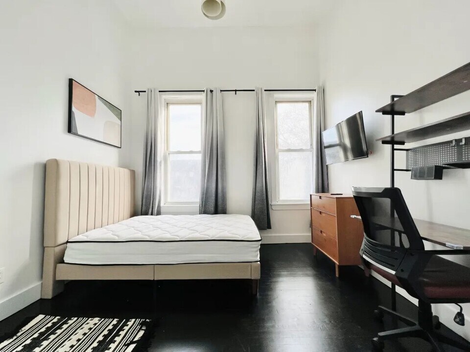Room for rent: This private Queen room in a 5 bedroom / 2 bathroom apartment, located in Bushwick is available on a flexible 1-18 month lease - Double height ceiling (14 foot ceilings), Central AC, 1.5 bathrooms, large closet. - Trains L and J at Halsey train station, 23 min to Manhattan - 4 minute walk to Irving Square Park, 4 minutes to grocery, 6 min to shopping - Location: Weirfield St and Evergreen Ave