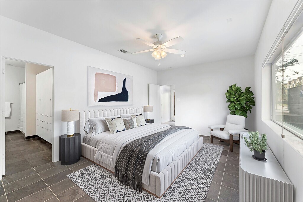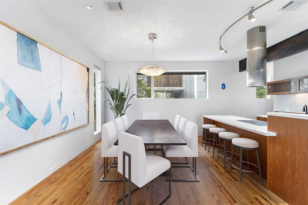 Sleek,modern,freestanding patio home,3 bedroom,3.5 baths,small 6-unit community. House faces the street. Conveniently located near Downtown & Montrose. Minutes to freeway access,Allen Pkwy,Memorial Dr.,restaurants,shopping & nightlife. Views of Downtown skyline from 18x18 roof deck! Real hardwood floors (no carpet in house),high ceilings,exposed stained trusses. Modern open kitchen features Sub-Zero built-in stainless steel refrigerator,dry bar w/wine cooler,Wolf Induction cooktop & oven,Bosch dishwasher. Living area with space for media wall. Built-in Study space. Bedrooms with hardwoods or tile feature custom built-in closet storage. Primary bath features soaking tub and tiled shower,dual sinks,walk-in closet. Tankless water heater,energy efficient heat pump,PEX water lines. MLS# 53333936