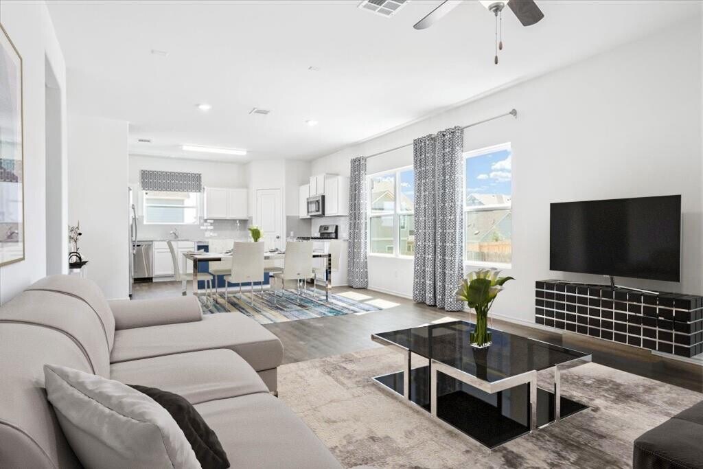 Experience this beautiful four-bedroom, 3.5-bathroom home in the highly sought-after Orchard Ridge neighborhood! With two full baths upstairs, the home boasts a fantastic open living layout, spacious bedrooms, and large closets. The main floor houses the master suite, and the game room can easily be transformed into a fifth bedroom or office. The property features an extra-deep two-car garage, and the fridge is included. The community's excellent amenity center offers a pool, splash pad, founders organic garden, fitness center, parks, and natural hiking trails. Conveniently located just five minutes from the new HEB at Bar W Marketplace and ten minutes from the new Domain, the Northline.