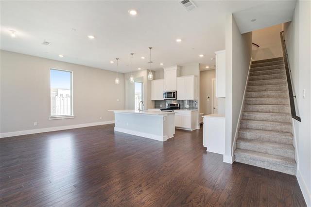 Beautiful Like New townhome minutes from US-75 and shopping, dining at the Shops at Watters Creek!The open kitchen,dining,living room is great for entertaining!This contemporary end-unit townhome has high-end finishes like Maestro Quartz countertops,large island,white cabinets,stainless steel NEW Appliances,hardwood flooring,mud room bench,wood garage door,epoxy flooring in garage, upgraded master bath tile,framed glass master shower,framed mirrors, LED disc lights, large grass backyard with covered patio, 10' ceilings, pendant lighting,community sprinkler system,dual pane windows,energy efficient lighting.Separate 3 bedrooms,2.1 Bathrooms floor plan,bright and spacious. REFRIGERATOR, WASHER, DRYER INCLUDED! Available Feb 1st, 2026