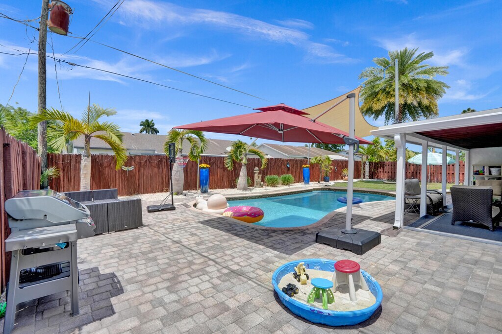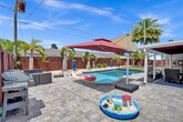 Great Location! Four bedroom,Two bathroom home. Living room,Dining Room,Play area/Family Room. Air Conditioned Two Car Garage. Laundry Area in Garage with extra storage space. Pool with child fence. Covered patio. Great for Entertaining. Rent includes pool maintenance and lawn service. Available July 1st. Unfurnished. Annual rental only. MLS ID B26019540