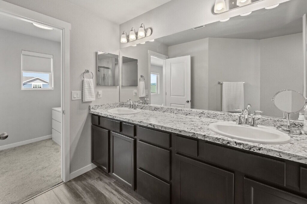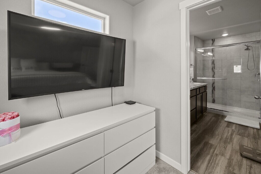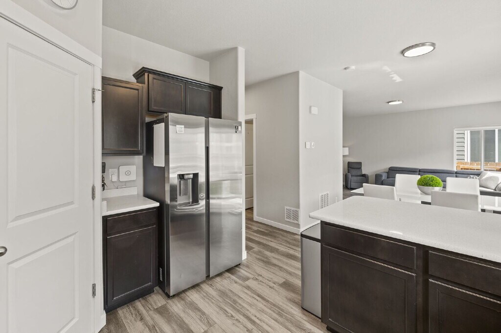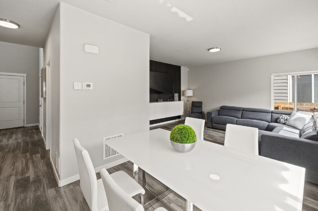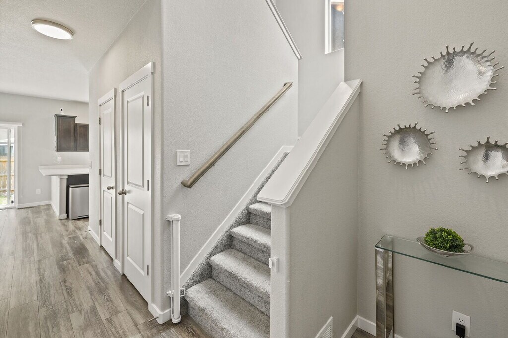 Located close to Fort Carson and I-25 this beautiful 2 story home has a lovely kitchen with stainless steel appliances, walk in pantry, granite countertops and open concept to the living room with custom wall feature. The dining area has walk out to the back patio with roll out patio cover and with modest back yard for easy yard maintenance. Additional powder room located on the lower level. The upstairs features 3 bedrooms including the primary suite with private on-suite bath that features double vanity with loots of cabinet space, spacious walk in shower and huge walk in closet. 2 additional spacious bedrooms, laundry room and additional full bath also located on the upper level. Privacy fenced back yard and 2 car garage. The community features walking trails, playgrounds & K-8 School.