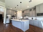 Includes washer, dryer, and refrigerator. Stunning K. Hovnanian home in highly sought-after Frisco ISD featuring an inviting courtyard entry and elegant finishes throughout, including wood floors, crown molding, and a corner stone fireplace. The chef’s kitchen offers built-in stainless steel appliances, 42-inch raised-panel painted cabinets, and a large island. The owner’s suite is a private retreat with a bay window and spa-like bath with separate tub and oversized shower. A home office with double painted French doors and a guest suite are conveniently located near the entry. Upstairs includes a spacious game room and media room, plus three bedrooms with private or hall baths. Additional highlights include a large laundry room behind the stairs, a 3-car split garage, and energy-efficient features such as a tankless gas water heater, zoned irrigation system, and radiant features for enhanced efficiency.