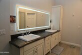 Stunning remodeled single-level home in highly desirable Scottsdale Ranch! This 4-bedroom,2.5-bath home with an office feature 3,259 sq ft of modern elegance. The MasterChef's kitchen boasts stainless steel appliances,quartzite countertops,a wine fridge,built in Coffee maker and custom cabinetry. Vaulted ceilings and accordion patio doors provide seamless indoor-outdoor living. The split floor plan offers privacy with a spacious primary suite. Step into your private backyard with a heated pool and spaperfect for entertaining,Pool heater work with electric and Jacuzzi heated by propane tank. Located in a quiet cul-de-sac with high-end upgrades throughout.