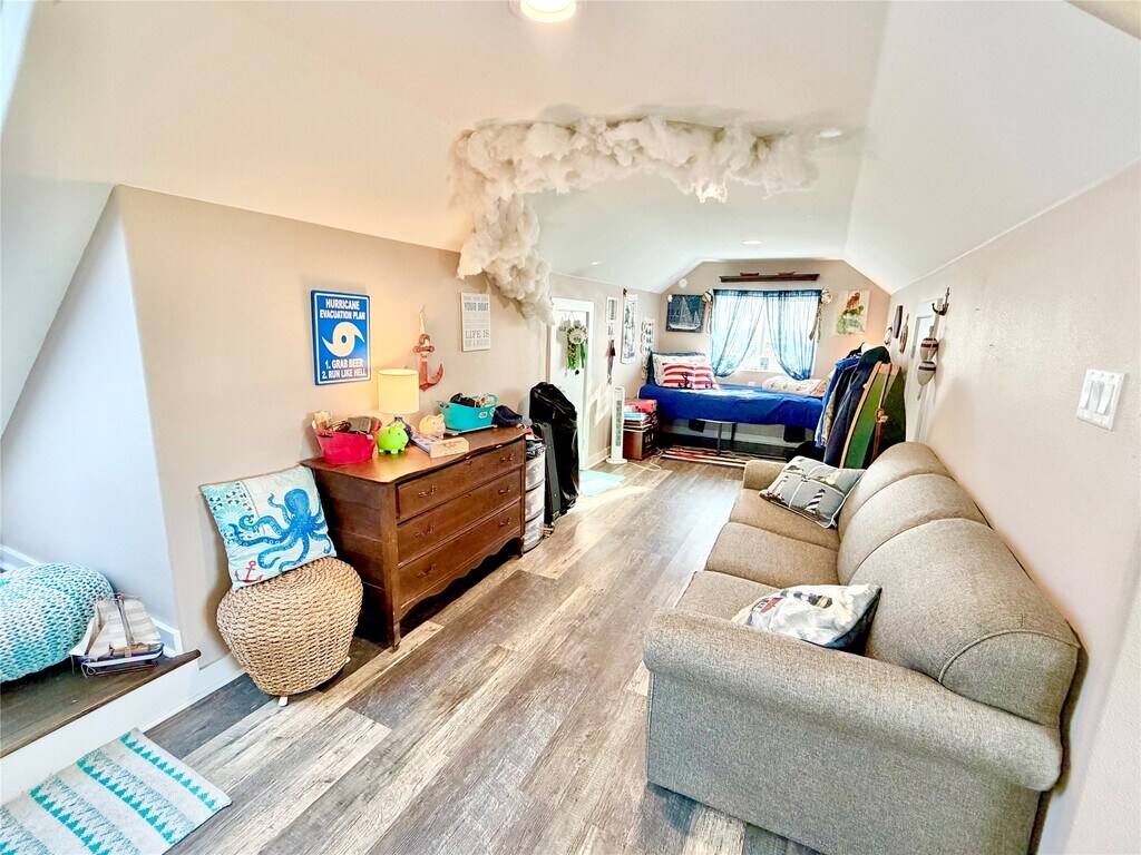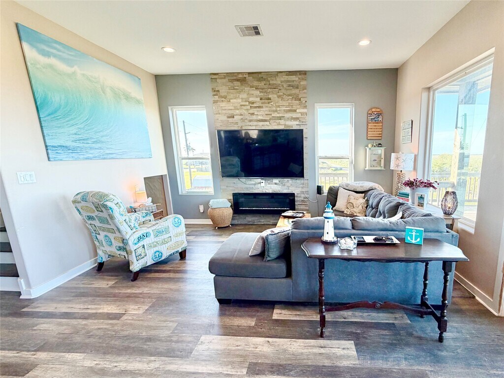 Welcome home to Island Paradise! This move-in ready,fully furnished beach retreat built in 2018 features an open concept living space finished with easy maintenance wood look luxury vinyl plank floors,a banquet dining table wide open to the kitchen that features chic open shelving and an island with a breakfast bar. The living room features anstreramlined electric fireplace with floor to ceiling stone surround and ample entertaining space. On the main floor,find a master suite complete with a dual head shower,as well as another bedroom,utility room,and full abth. Upstairs,the loft spans the entire distance of the home creating a perfect bunk room,game room,or family flex space! Outside you can enjoy the wrap around deck,fully fenced double lot with no back neighbors,an accessible storage shed,RARE 3-car garage,and additional covered entertaining space under the home. Don’t miss out on this great opportunity!! MLS# 25005099