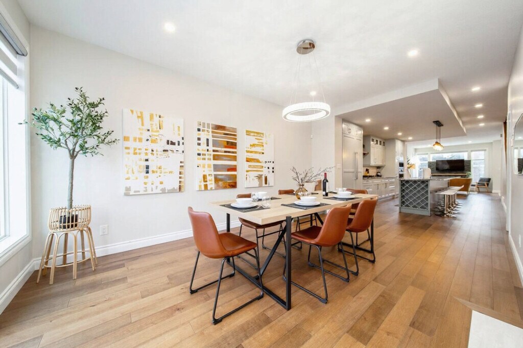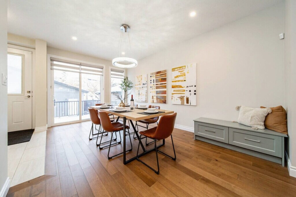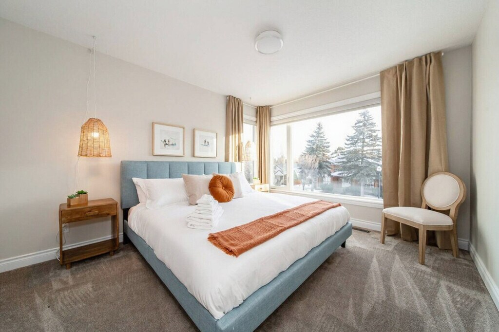 Indulge in luxury in YEG with this centrally located home, just minutes from the University of Alberta and Downtown. Whether you're exploring the city or need a private space to host family, relax, or work in, this home is perfect for you. Featuring three bedrooms and 2.5 bathrooms, this beautifully decorated space offers a warm ambiance with modern furnishings. Enjoy the backyard and patio, and take advantage of the double car garage parking. Feel at home with a fully equipped kitchen, complete with brand new Bosch stainless steel appliances including a microwave, fridge, gas stove, and dishwasher, along with glasses, mugs, dishes, and cutlery. Relax in the cozy living room with fast WiFi and Roku TV, or enjoy the convenience of in-suite laundry. The home comfortably sleeps six with two king-size beds and one queen bed, all adorned with fresh sheets changed after every guest. Enjoy the convenience of a double car garage for parking. Please note that early check-in or late check-out is available for a fee of $30 for one or $50 for both, with prior approval. Additional cleaning fees may apply if the house is left messy and unorderly. Welcome to the upscale Glenora neighborhood, a hidden gem located minutes from the University of Alberta and downtown core. Perfectly balancing vibrancy and residential tranquility, Glenora is an ideal haven for students and families alike. The neighborhood offers a unique blend of convenience and charm, with parks, schools, local cafes, restaurants, and shops dispersed throughout the area. The property ensures easy access to public transportation and major roadways, making it easy to explore everything Edmonton has to offer. This is the main floor of the home, and there is a tenant living in the basement. Although you will likely not cross paths as the unit is locked with a private entrance, there is a possibility you may hear or see them around the exterior of the premises. Quiet time hours are between 10 PM and 8 AM to respect the neighbors. No pets are allowed in the home. This is a non-party home, and any violation of the house rules could result in immediate termination and removal from the property without a refund. No smoking of any kind is permitted, and a $250 fee will be charged if the property smells of smoke or any evidence is found that smoking occurred inside. Do not tamper with any fire alarms, smoke detectors, or security cameras on the property, as a minimum $100 call-out fee will be charged to inspect and reset the system if tampered with. The maximum occupancy is 13 people, and any unregistered guests will be charged a $40 additional guest fee per person per night. A late check-out fee of $50 will be applied if you have not vacated the property 30 minutes after the 10 AM check-out unless prior permission is granted. If check-out is more than 2 hours late, you will be charged for an additional day at the base nightly rate, but this does not award you to stay for the additional day. Whether you're here for academic pursuits or professional endeavors, this home caters to your remote work-friendly needs with fast WiFi and a dedicated workspace. A laptop computer is not included. Registration Number: 510218298-001 [SI]
