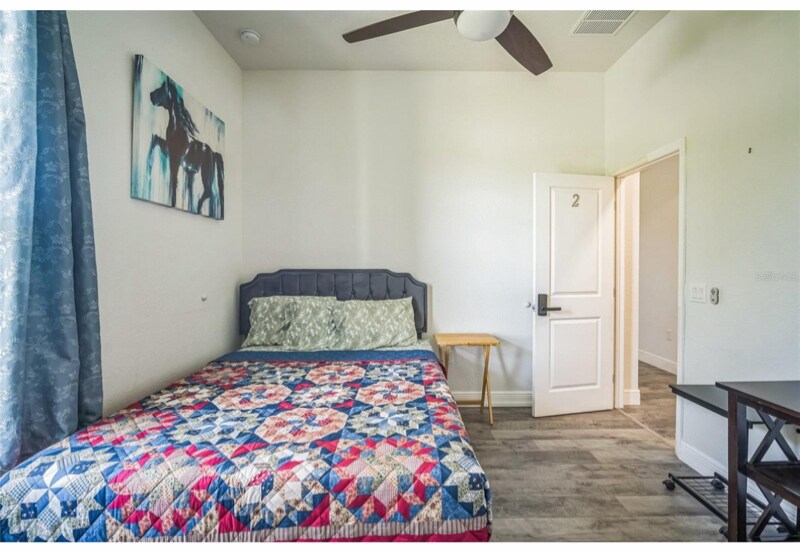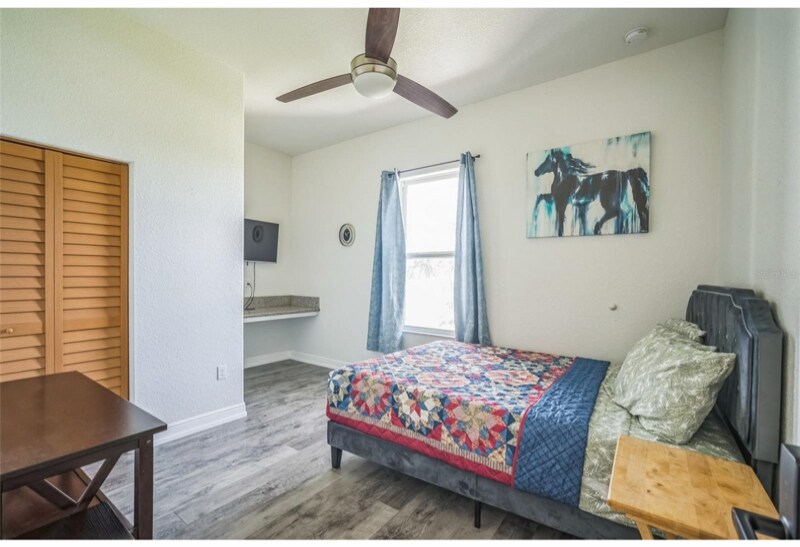 Property Id: 2168490 Newer Construction Home in Port Richey 4BR/2BA Bright with High Ceilings, Screened Lanai & Lake View, Fully Furnished, Conveniently Located on a Corner Lot with No Front Neighbors, Short Walk to US-19, Shops & Restaurants ———————————————————————————- Welcome to your new home! This modern, fully furnished house (built 2020) is perfect for anyone looking for comfort, convenience, and style in a quiet Port Richey neighborhood. Home Highlights: - Master suite with private bath (tub + separate shower), plus 3 bedrooms with shared bathroom with double vanity (Note: The fourth bedroom is unfurnished and is used as storage). - Fully Furnished & Ready: Move in with just your suitcase kitchen, dining, and living areas fully set up. No carpets! - Spacious Living Areas: Large living room, separate dining area, and screened porch for relaxing or entertaining. - Laundry & Climate Comfort: Dedicated laundry room with washer & dryer, central A/C, and ceiling fans in every room.