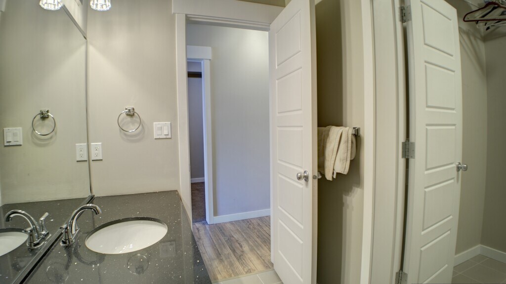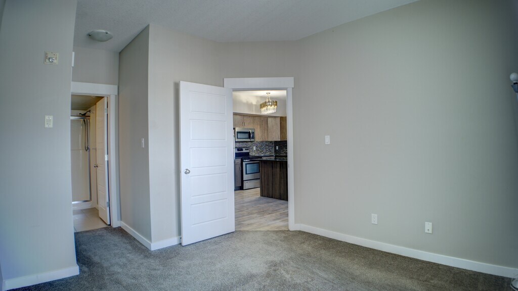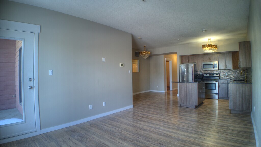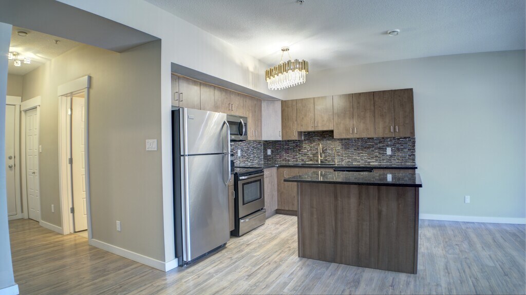 Welcome to Unit 408 at 10518 113 Street NW, a beautifully finished 2 bedroom, 2 bathroom condo in central Edmonton offering the perfect blend of style, comfort, and convenience. With an open-concept layout, sleek finishes, and a private balcony, this home is ideal for professionals, roommates, or anyone looking to enjoy urban living with upgraded features. From the moment you step inside, you're greeted with warm modern flooring, oversized windows, and a stunning kitchen complete with a large island and contemporary backsplash. The spacious layout flows seamlessly into the living area, making it perfect for entertaining or relaxing after a long day. Suite Features • 2 Spacious Bedrooms • 2 Full Bathrooms • In-Suite Laundry (Washer & Dryer) • Private Balcony with Views • Modern Kitchen Island • Stainless Steel Appliances • Air Conditioning • Climate Control • Large Windows with Window Coverings • Linen Closet & Ample Storage • Open-Concept Living & Dining Area • Dog Friendly & Pet Friendly - $50/month/pet upon board approval Why This Unit Stands Out: • Top-floor feel with natural light • Stylish chandelier feature lighting • Modern cabinetry & backsplash • Functional 2 bed / 2 bath layout (great for roommates) • Private outdoor space • Secure building + garage parking