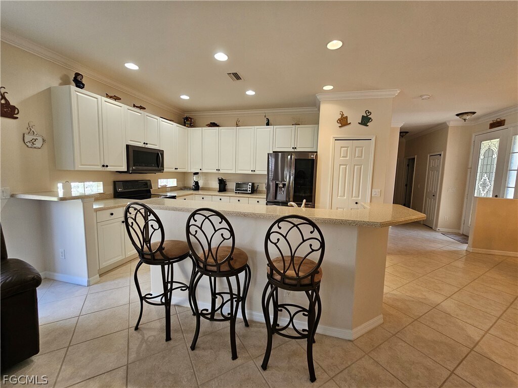 Available May 15 and for Seasonal 2026-2027 bookings Voted one of the top 55+ communities in the country. Enjoy Paradise and work from home. Turnkey 2 bedrooms +Den,2 Bathroom 2 Car Garage home. Beautifully decorated with tile flooring throughout home and wood plank flooring in bedrooms and den. Kitchen with stainless steel appliances,cube glass,breakfast island and additional side entry. Separate dining area great for having guests over for dinner. Gorgeous Master bedroom with extended windows,king bed,barn slider,plantation shutters and large walk in closet & beautifully tiled master bathroom step in shower and his and hers sinks. Guest bedroom with queen bed,plantation shutters and over bed block windows for your guest to greet the Florida morning sun. Den/office has futon and desk. Pocket sliders from living room lead to peaceful paver extended lanai with picture screen,gas grill,outside TV perfect for evening entertaining. Sink in Laundry Room. Pelican Preserve offers a 70,000 sq ft. Town Center 2 outdoor pools & indoor lap pool with walking track,pickleball tennis spa fitness center 2 restaurants craft,sewing & woodworking room billiards room theater,exercise classes bingo nights,card rooms,outside amphitheater,nature walk with preserve boardwalk,& more. Monthly rental includes water and electric w/cap,cable & internet,tenant to pay 11.5% tax. Available May 15 - November $2400 per month plus taxes and fees. Utilities Included. Dec 2026 - April 2027 - $6500 per month +taxes and fees includes utilities. Seasonal 3 or 4+ months Dec - Feb or Feb - April