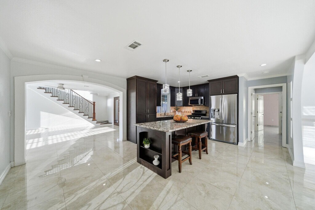 EXTRAVAGANT! 4/2.5 W/Grand Entry Sets The Tone W/A Classic Wrought-Iron Front Door W/Privacy Tint,Covered Porch W/Extended Flagstone Pavers That Highlight The Elegant Stucco & Stone Elevation* Porcelain Tile Thru-out 1st Floor,Leading You Into A Gourmet Chef’s Kitchen W/A Large Sitting Island W/Custom Pendant Lighting,Extra Cabinetry & A Built-In Bookshelf,Gas Stove,Stainless Steel Appliances,Dark Rich Cabinetry W/Hardware,& Under-Cabinet Lighting That Elevates Detail* Massive Formal Dining Room W/Tray Ceilings & Custom Built-Ins,While The Modern LED Fixture & Hidden Cove Lighting Create A Upscale Ambiance* Oversized Living Room* Covered Patio* 1st Floor Primary Suite W/Private Patio Access,Half Bath,& A Breathtaking Crystal Spiral Raindrop Chandelier* 2nd Floor Private Primary Suite Offers Its Own Covered Balcony W/Iron Border* Canned Lights* Pocket Doors* 2 A/C Units* Backyard W/A 10-Foot Privacy Fence* Large Shed W/Electricity* EZ Access to Beltway 8,I45,& 249 & Airport! MLS# 38497232