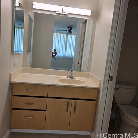 This top-floor unit in a boutique seven-story building features two bedrooms, two full bathrooms, and two full sized dedicated parking stalls—one covered and one open. The condo has been upgraded with newer paint, flooring, and appliances, and includes a full-size washer and dryer in the unit. Split air conditioning is installed in both the living room and primary bedroom for added comfort, while a covered lanai provides extra space for relaxing. Conveniently located near freeway on-ramps and the bus line, the property is just minutes from Tripler, Fort Shafter, and the airport. The complex also offers a pool and BBQ area. The unit is ready for immediate occupancy, and the tenant will be required to obtain renter’s insurance prior to move-in. No pets or smoking please - this is a No Pets building. For a showing, call or email