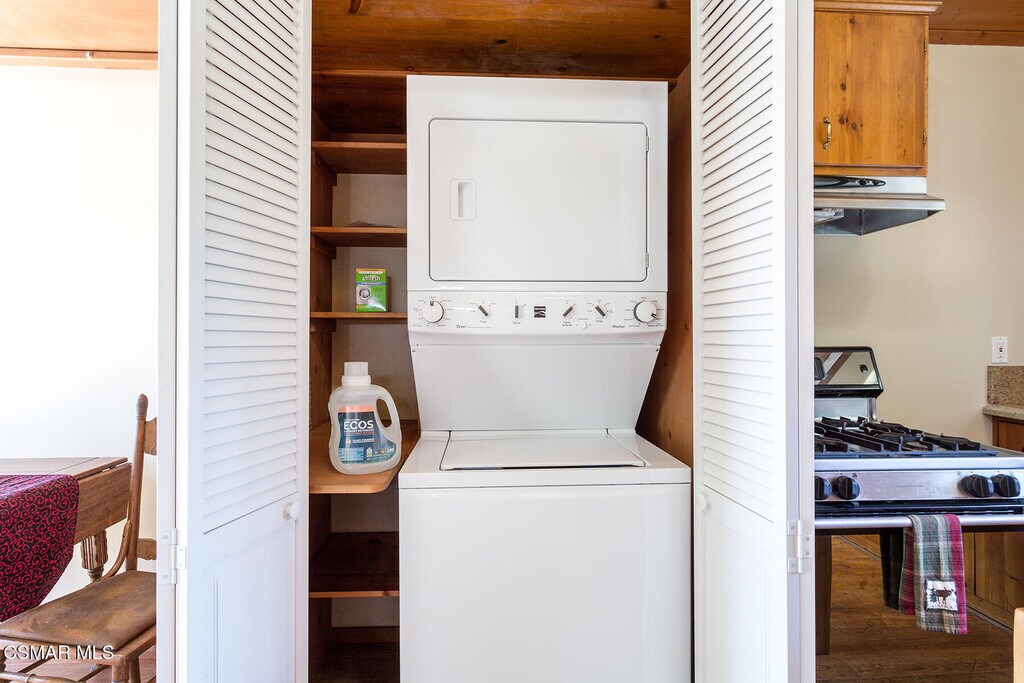 Tucked away on a private, lake front property, this beautifully designed upstairs studio apartment offers a rare and peaceful living experience. Located above a detached two car garage with its own private entrance, this spacious studio is ideal for a single professional seeking privacy, comfort, and a tranquil setting. Approximately 1000 square feet, the thoughtfully remodeled interior features a full kitchen, bathroom, walk in closet, indoor laundry, cozy fireplace, and charming loft area. The generous living space can easily be arranged to create a separate bedroom design. Step outside onto the large private deck and enjoy serene lake views surrounded by mature trees and nature.The lease includes stove, refrigerator, washer and dryer, water, electric, gas, and cable for convenient living. One parking space is provided. Additional parking available on the street outside the security gate.Set in a quiet country atmosphere while still being conveniently located about 7 miles to Thousand Oaks and approximately 44 miles to Los Angeles, this unique property offers the perfect balance of retreat and accessibility.No pets and no smoking, no exceptions please. Owners reside in the main house on the property.