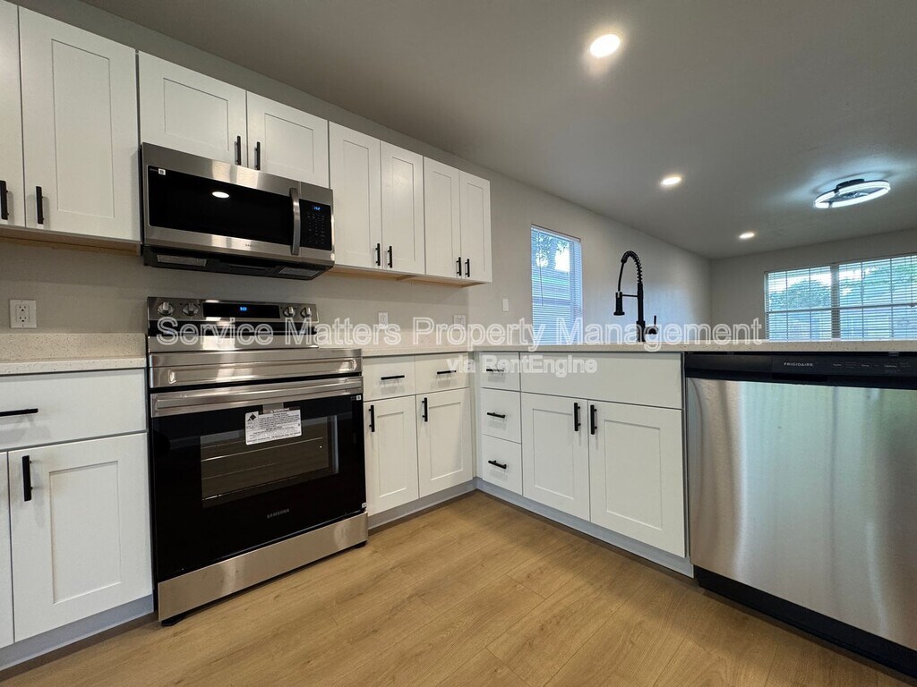 Tucked away in a charming neighborhood on the north side of Pensacola you'll discover this recently renovated 3 Bedroom home. The home features an easy to maintain yard, spacious front patio, and privacy fenced backyard with patio area for grilling, and that's just on the outside. Inside, you'll quickly discover all of the updates this home provides. A soft-toned paint scheme is featured through the home and pairs perfectly with the wood laminate flooring. Recessed and updated light fixtures partner with the zero texture ceilings to provide a modern vibe. The home's open concept floor plan affords flexibility in arranging furniture and creates a wonderful environment for entertaining family and friends. For dining, enjoy flexibility with a spacious eat-in kitchen area and a large breakfast bar. Speaking of kitchens, there's lots to love in this one with a suite of brand new appliances, granite counters, and a farm style sink. The owner's suite is spacious and includes a walk-in closet. And the adjoining bathroom includes a large, shower and tub combo and updated vanity and lighting. Modern ceiling fans are found throughout the home to help keep things cool during the warmer months. You'll also love the laundry room with convenient access to the garage. Don't let this home pass you by. It won't last long. By submitting your information on this page you consent to being contacted by the Property Manager and RentEngine via SMS, phone, or email.