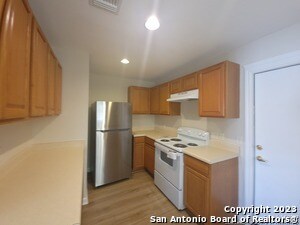 4-bedroom, 2.5-bath home located in South San Antonio near Palo Alto College. The home features hard flooring throughout-no carpet. Enjoy a large kitchen with ample cabinet and storage space; refrigerator is included. Conveniently situated just minutes from Palo Alto College and Texas A&M San Antonio, less than 10 minutes from South Park Mall, 20 minutes from both downtown and Lackland AFB, and with a short commute to Von Ormy, Somerset, and Elmendorf.