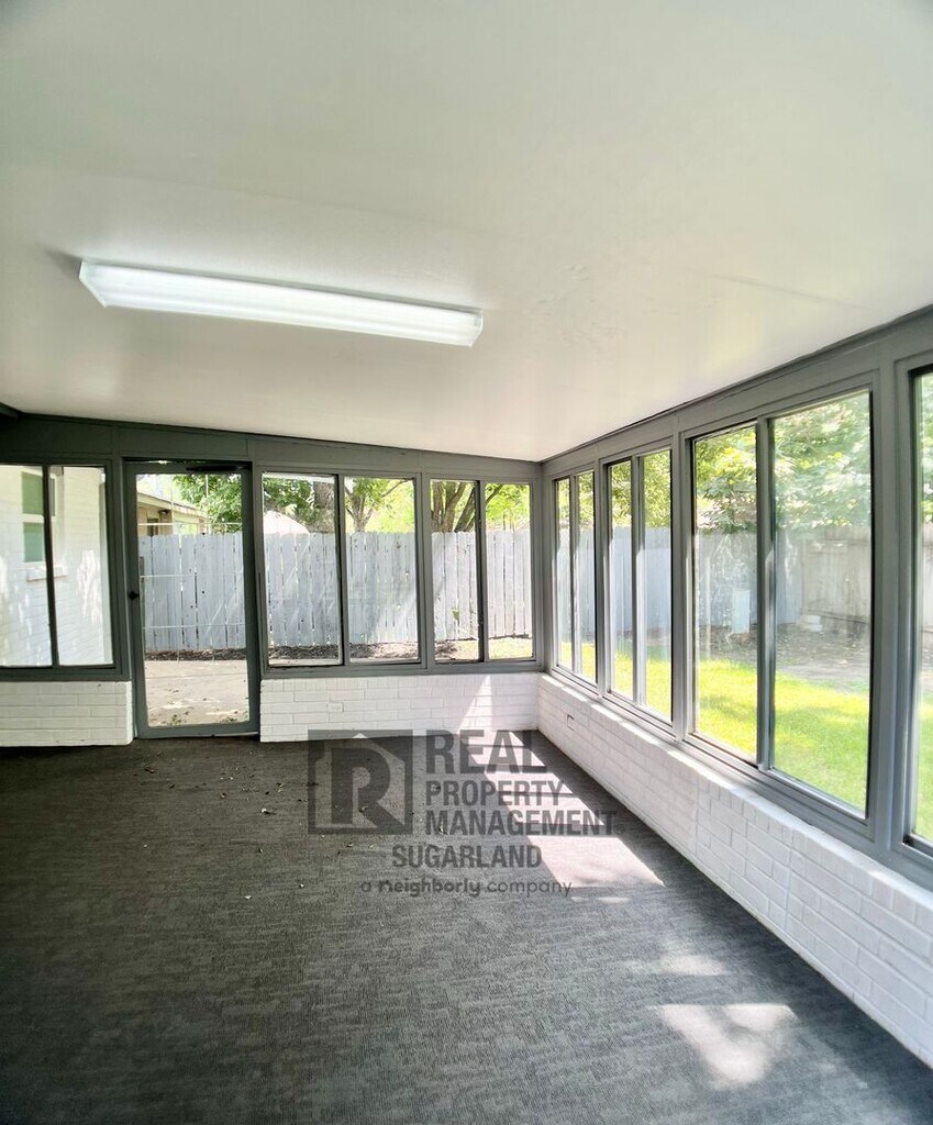 Welcome Home to this gorgeous one story home in Sugar Land, TX. FULLY RENOVATED. It has 4 Bedroom and 2 Bathrooms, beautiful living room with a fire place and a sliding glass door to the patio, spacious kitchen with Granite countertops and Brand new appliances (including new Refrigerator, oven, dishwasher, microwave, washer and dryer), formal dining room and breakfast area open to the living room. This property has a gorgeous covered patio/sunroom that you can relax in. Easy commute to all shops and restaurants with two minutes away from HWY 6 south! New blinds will be installed this week. ***All Real Property Management Sugarland residents are enrolled in the Resident Benefits Package (RBP) for $45.00/month which includes renters’ insurance, HVAC air filter delivery (for applicable properties), credit building to help boost your credit score with timely rent payments, $1M Identity Protection, move-in concierge service making utility connection and home service setup a breeze during your move-in, our best-in-class resident rewards program, and much more! More details upon application.